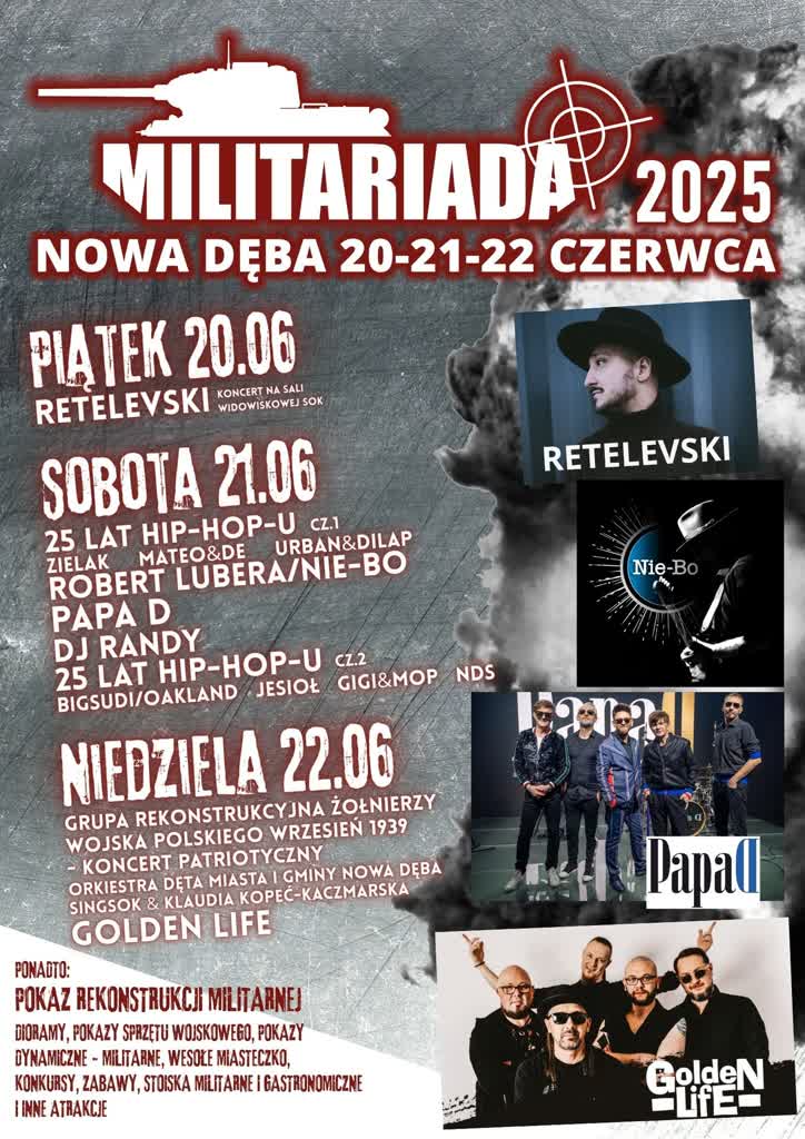 Militariada to kilkudniowe święto militarno-muzyczne, które od lat przyciąga tłumy na tereny rekreacyjne „Nad Zalewem” w Nowej Dębie.