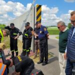 Służby ratownicze przećwiczyły w Sandomierzu scenariusz działań na wypadek zagrożenia powodziowego. Chodzi o montaż trzech przesłon przeciwpowodziowych na murze zabezpieczającym osiedle Baczyńskiego oraz hutę szkła przed powodzią.