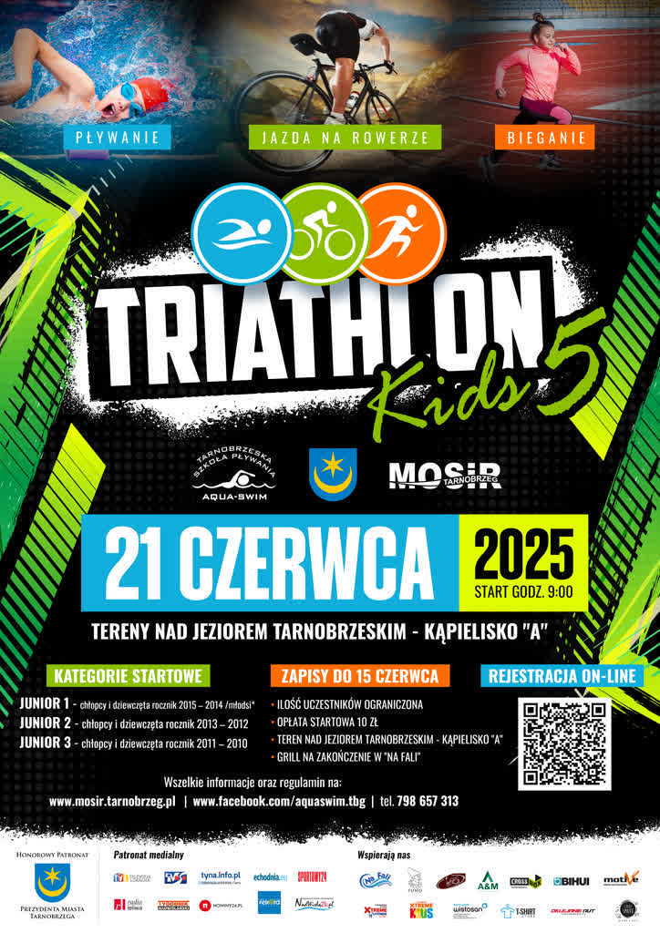 W najbliższą sobotę, 21 czerwca, nad Jeziorem Tarnobrzeskim odbędzie się V edycja zmagań dla dzieci „Triathlon KIDS”. Głównym organizatorem wydarzenia jest Tarnobrzeska Szkoła Pływania AQUA-SWIM w Tarnobrzegu.