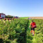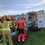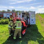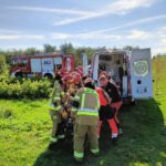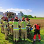 Mężczyzna podczas mechanicznego zbioru porzeczki wpadł pod kombajn do porzeczki. Osoba która pracowała razem z nim, wydostała go spod maszyny, podnosząc kombajn przy użyciu drugiego ciągnika rolniczego i lewarka, a następnie przekazała poszkodowanego pod opiekę zespołu ratownictwa medycznego. Ratownicy zabezpieczyli miejsce zdarzenia i pomogli zespołowi medycznemu w transporcie poszkodowanego na noszach przez pole do karetki. Dalsze czynności prowadzi policja.