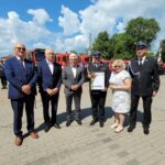 Tam odsłonięto tablicę pamiątkową poświęconą strażakom założycielom i kontynuatorom działalności OSP w Skotnikach i uhonorowano specjalnymi odznaczeniami zasłużonych druhów.
