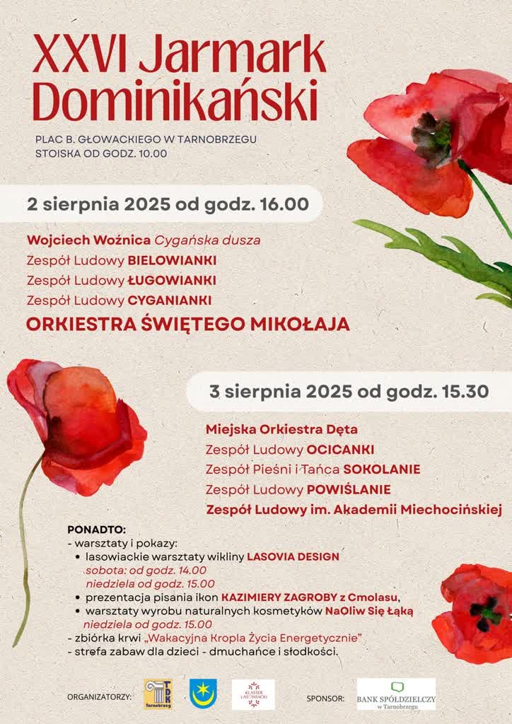 W najbliższy weekend w Tarnobrzegu odbędzie się XXVI Jarmark Dominikański. 2 i 3 sierpnia Plac Bartosza Głowackiego wypełni się stoiskami z rękodziełem, tradycyjnymi, regionalnymi produktami spożywczymi czy naturalnymi kosmetykami.