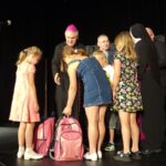 Uroczyste przekazanie wyprawek miało miejsce w Domu Katolickim w Sandomierzu Rozdaniu plecaków towarzyszył występ Krakowskiego Teatru Biblijnego. Na dzieci czekał także słodki poczęstunek.