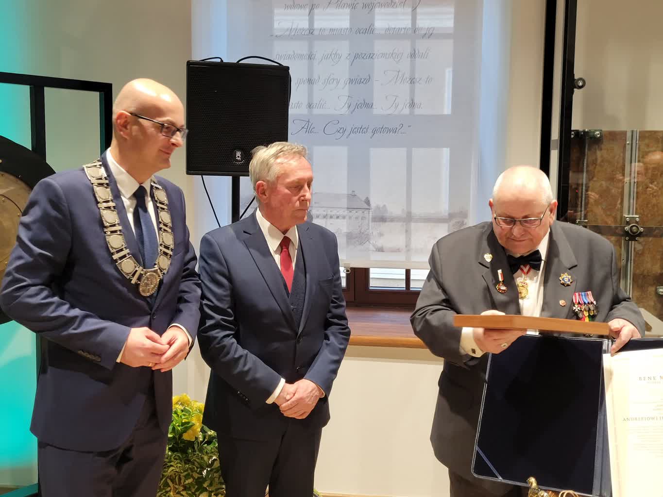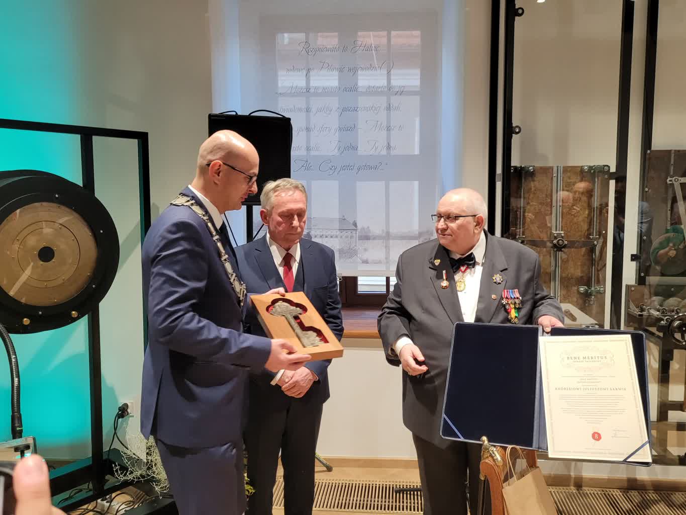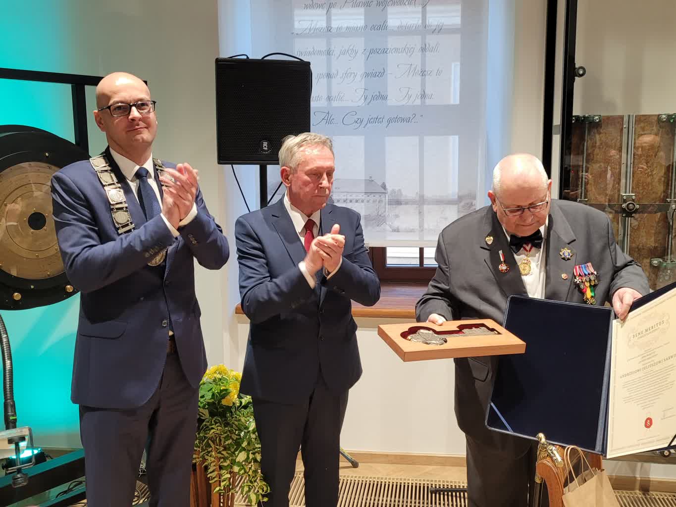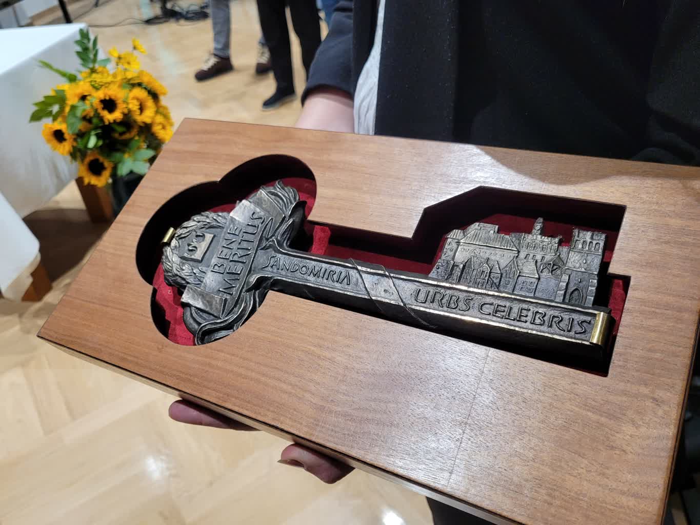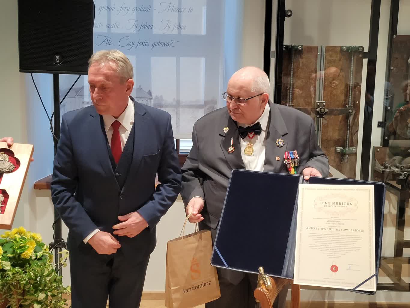 Podczas spotkania autor odebrał z rąk burmistrza Sandomierza honorowe wyróżnienie „Bene Meritus – Dobrze Zasłużony” wraz z symbolicznym kluczem do bram miasta.