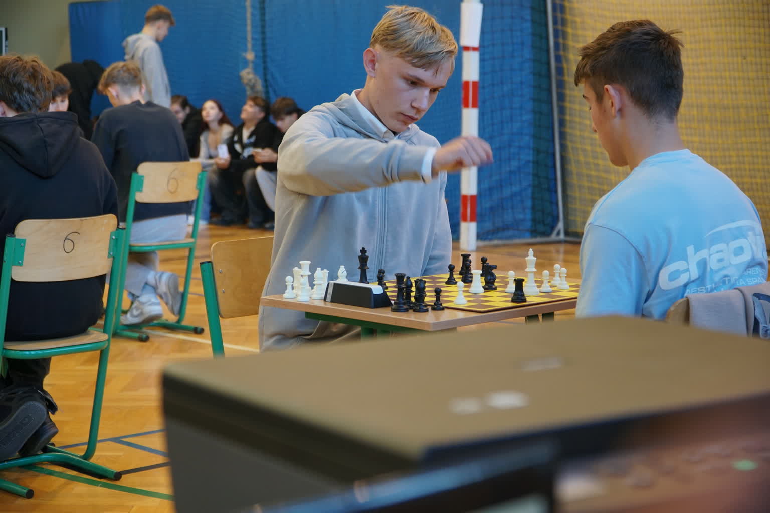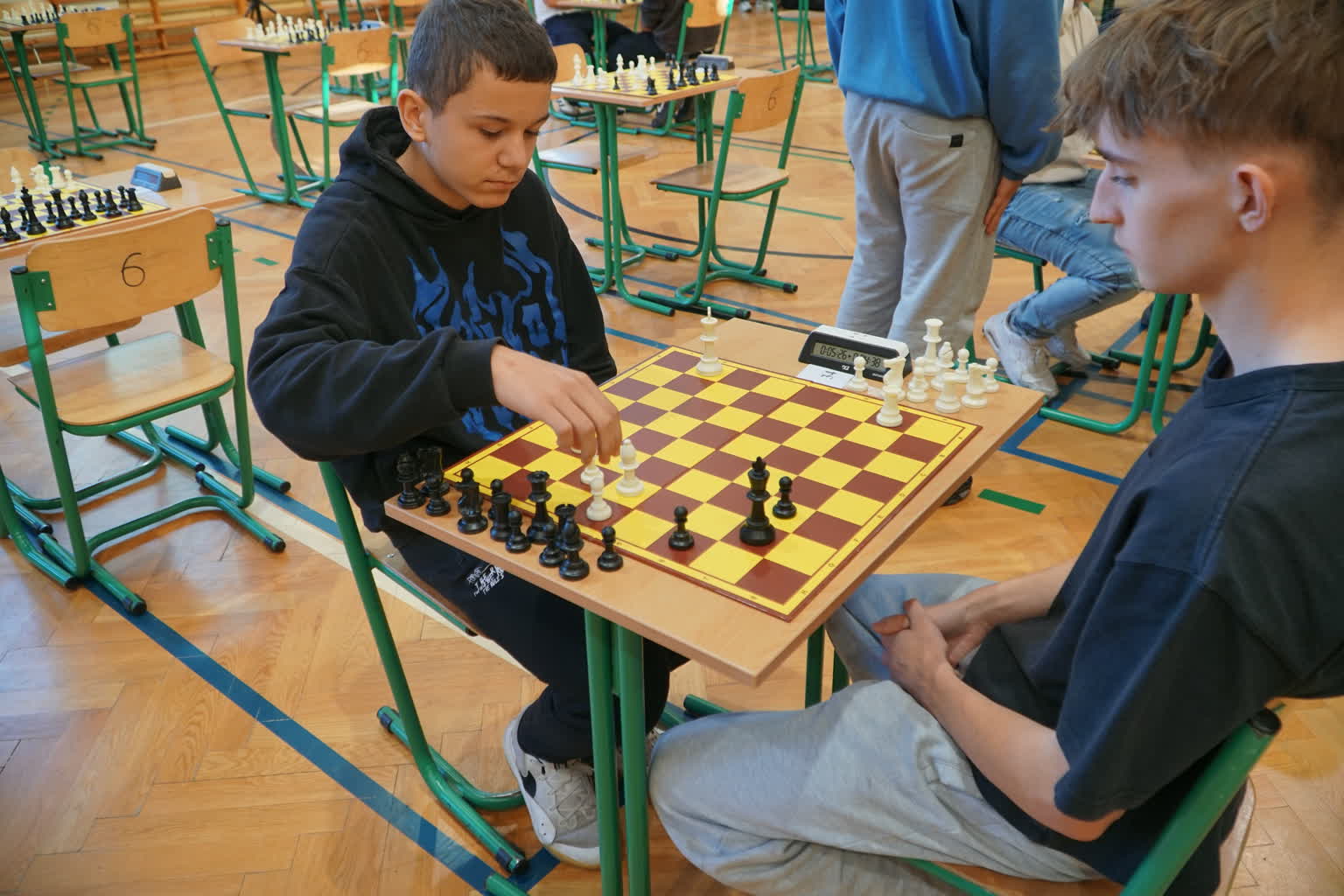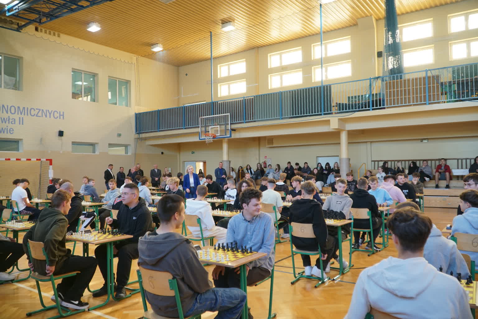 Spotkanie otworzył dyrektor szkoły pan Jan Ungeheuer, który podkreślił, że nieprzypadkowo szachy są nazwane grą królewską, bowiem były popularne na dworach królewskich i wśród arystokracji, gdzie traktowano je jako rozrywkę intelektualną. Uczyły i nadal uczą logicznego myślenia, strategii i planowania, rozwijają zdolność szybkiego podejmowania decyzji w trudnych sytuacjach, doskonalą pamięć i koncentrację. Kończąc swoje krótkie wystąpienie, dyrektor życzył wszystkim zawodnikom jak najlepszych wyników.