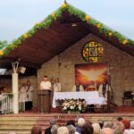 W wieczornej mszy wzięli udział także pielgrzymi, którzy przyszli pieszo z Sandomierza a także z innych miejscowości. Część przyjechała autokarami. Jak co roku plac pod sanktuarium wypełniły setki wiernych. Zdaniem pasterza diecezji, to ważne z kilku względów: