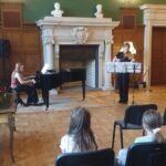 Niedzielny wernisaż przyciągnął licznych gości. Zanim publiczność weszła do sal wystawowych, w klimat wydarzenia wprowadził wszystkich muzyczny występ córek artysty.