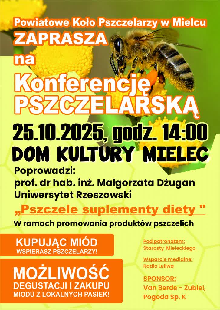 Konferencja rozpocznie się już od godziny 14.00 w Samorządowym Centrum Kultury w Mielcu. Podczas niej będzie możliwość degustacji produktów pszczelich jak i prelekcji dotyczących znaczenia pszczół w środowisku.