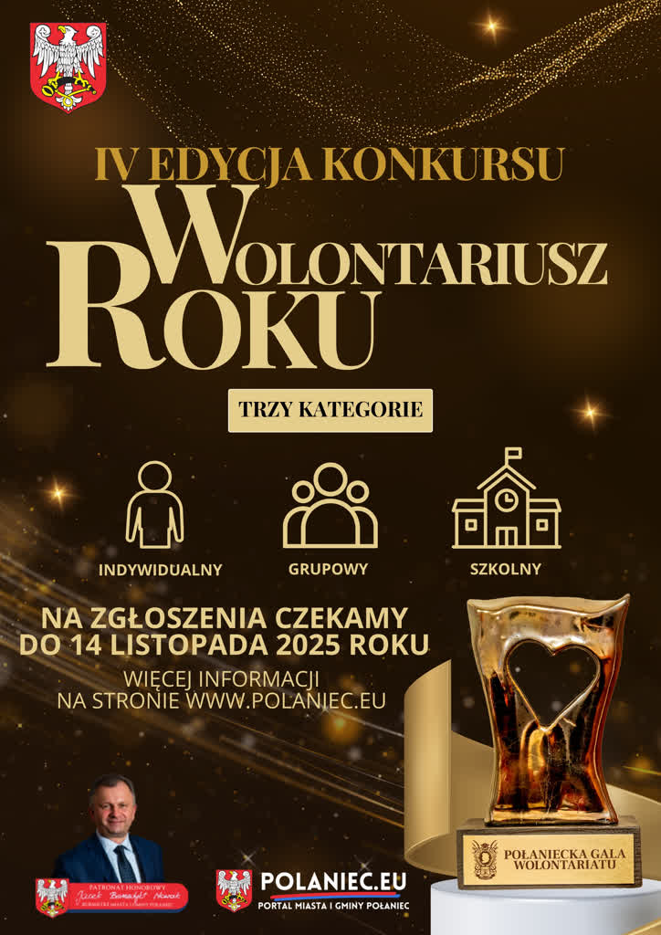 Wolontariat to coś więcej niż pomoc – to postawa, która zmienia świat na lepsze, zaczynając od najbliższego otoczenia. Konkurs „Wolontariusz Roku” powstał z myślą o ludziach, którzy robią coś dobrego nie dla poklasku, ale z wewnętrznej potrzeby – z serca.. Nagrody zostaną przyznane w trzech kategoriach: wolontariat szkolny, indywidualny i grupowy.