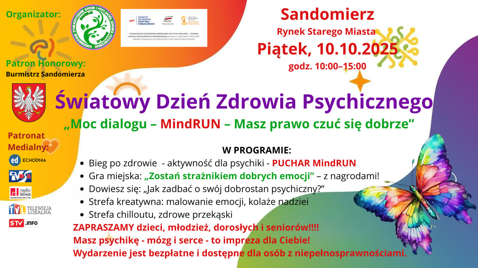 Na rynku Starego Miasta w Sandomierzu dziś obchody Światowego Dnia Zdrowia Psychicznego. Przyświeca mu hasło „Moc dialogu – MindRUN – Masz prawo czuć się dobrze”.