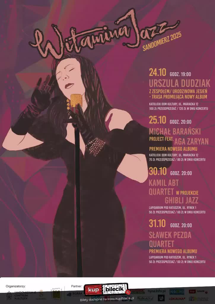 Michał Barański wystąpi w Sandomierzu razem z Agą Zaryan. Jej twórczość to kwintesencja tego, co najlepsze w historii jazzu, a zarazem kontynuacja tradycji legendarnych dokonań wokalistek jazzowych. Aga Zaryan jest laureatką najważniejszych nagród w świecie muzycznym, od lat uznawaną za najlepszą wokalistkę jazzową w Polsce (ankieta Jazz Top – magazynu Jazz Forum).