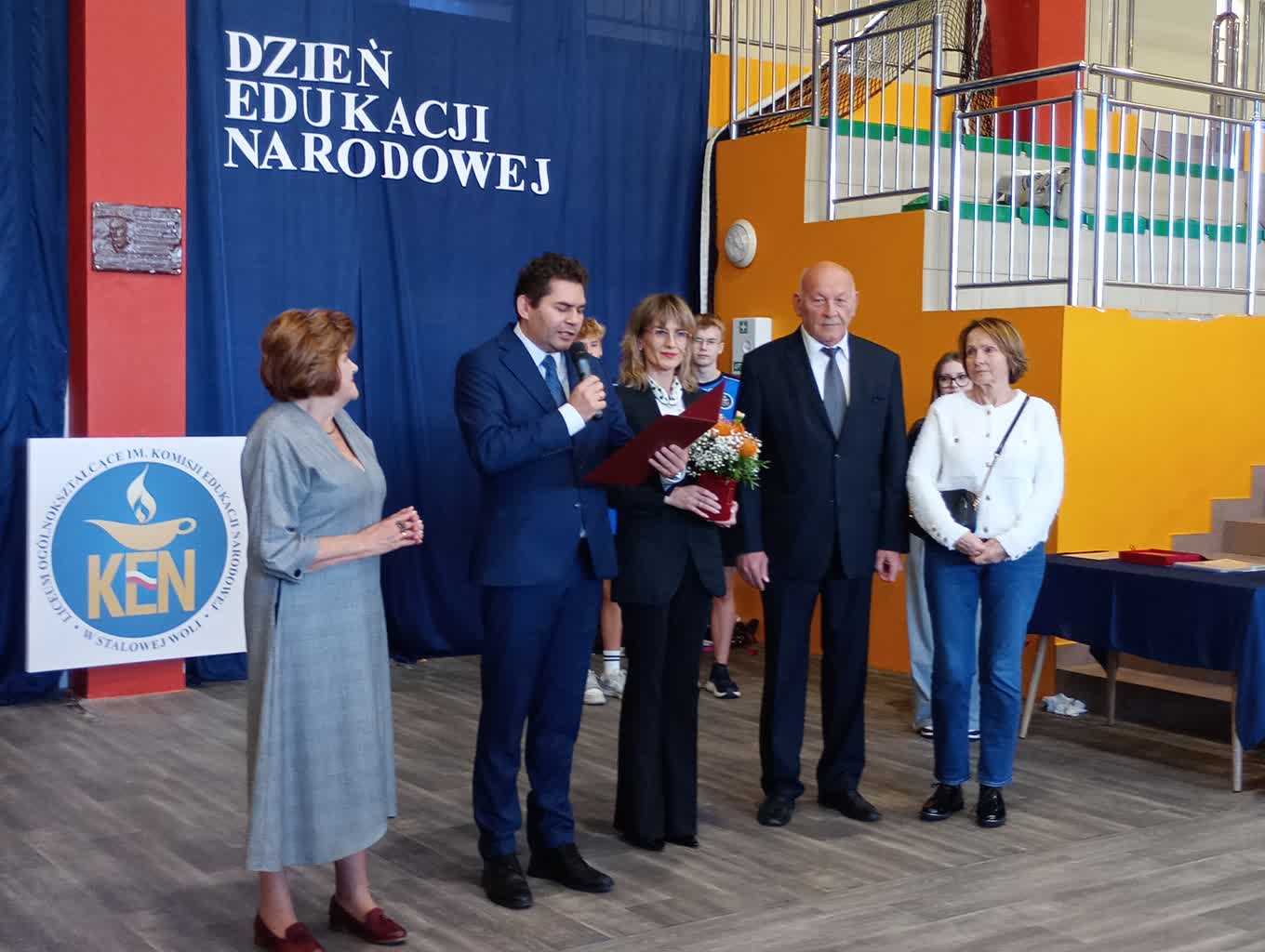 Niespodzianką po odsłonięciu tablicy było wręczenie tytułu Ambasadora Stalowej Woli. Marek Karbarz odebrał ten tytuł z rąk Prezydenta Stalowej Woli Lucjusza Nadbereżnego i wicedyrektor MDK w Stalowej Woli Kamili Piech.