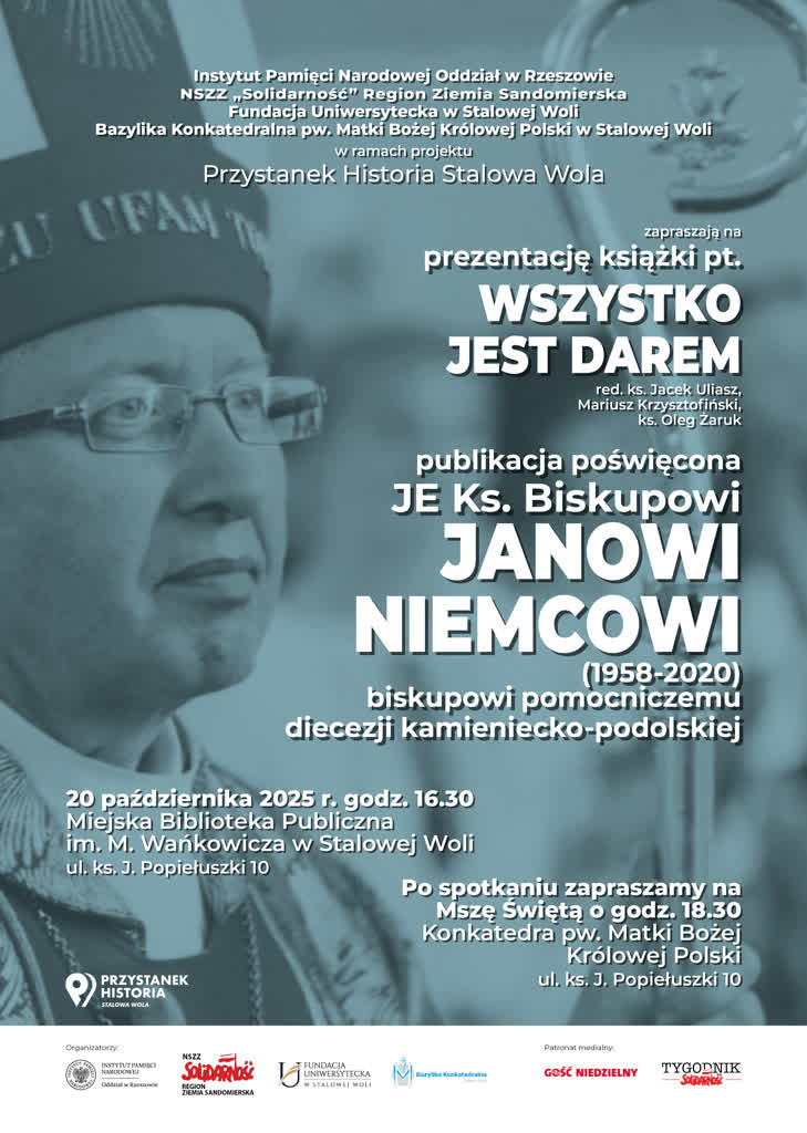 W ramach spotkań cyklicznego projektu – Przystanek Historia Stalowa Wola – obędzie się prezentacja książki „Wszystko jest darem…” poświęconej Jego Ekscelencji ks. biskupowi Janowi Niemcowi.