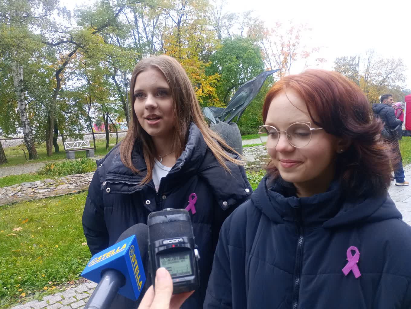 W Parku Miejskim podczas różowej akcji nie zabrakło też młodzieży ze szkół średnich. M.in. Centrum Edukacji Zawodowej przygotowało różowe wstążeczki, a słodki poczęstunek stalowowolski 'Ekonomik’. Mówią Maja Sady i Gosia Kordjak