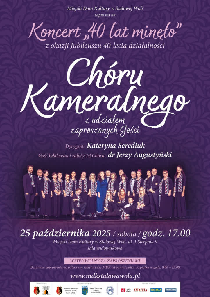 Chór Kameralny w Stalowej Woli świętuje w tym roku 40-lecie swojego istnienia. Z tej okazji w najbliższą sobotę, 25 października, w Miejskim Domu Kultury, gdzie powstał chór, odbędzie się urodzinowy koncert.