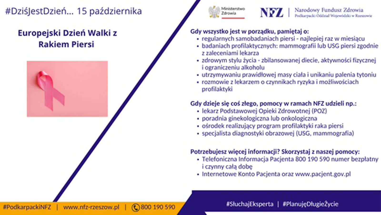 15 października obchodzony jest Europejski Dzień Walki z Rakiem Piersi. Dziś mówi się dużo o profilaktyce: regularnym samobadaniu piersi, badaniach mammograficznych i USG, a także o zdrowym stylu życia. Lekarze podkreślają, że wczesne wykrycie choroby daje największe szanse na skuteczne leczenie.