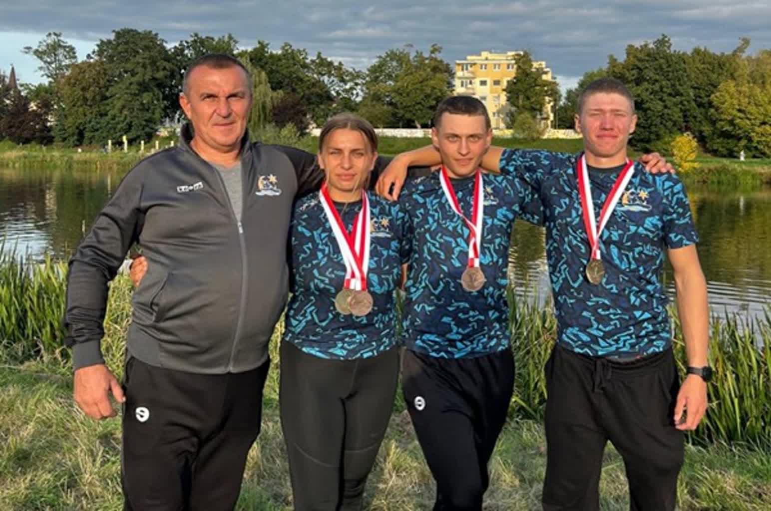 Na zdjęciu od lewej: Piotr Kwasek trener z Klubu Kajakowego Jezioro Tarnobrzeg, trenerka i zawodniczka Magdalena Szczęsna, Piotr Stępień Vladyslav Grabar.