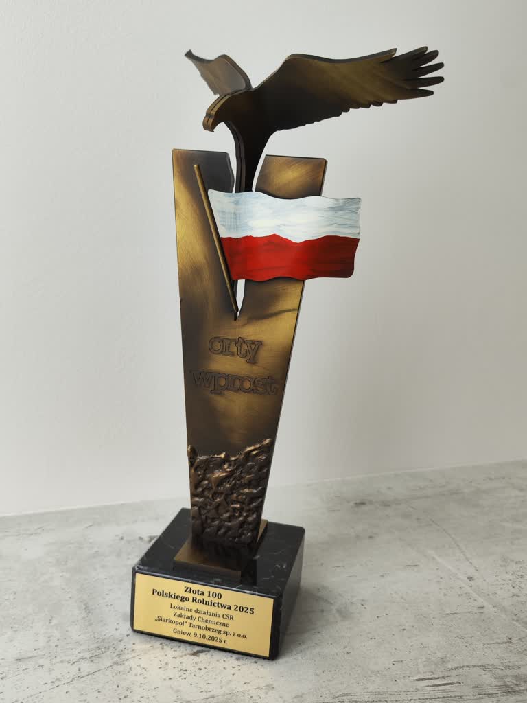 Podczas gali „Złota Setka Polskiego Rolnictwa”, która odbyła się 9 października na zamku w Gniewie, Grupa Siarkopol Tarnobrzeg – Zakłady Chemiczne została wyróżniona przez tygodnik „Wprost” w kategorii „Lokalne Działania Społecznej Odpowiedzialności Biznesu”.