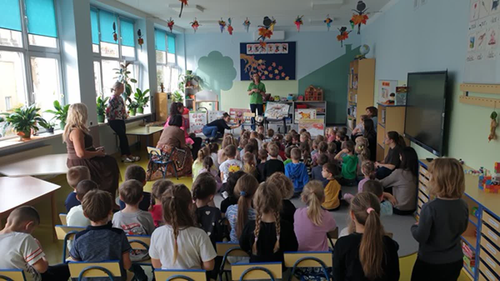 Grupę sześciolatków odwiedziła lekarz weterynarii z Tarnobrzega, specjalista chorób psów i kotów Katarzyna Oręziak. Opowiadała najmłodszym, jak prawidłowo opiekować się psami, jak je traktować i kiedy należy zachować ostrożność.
