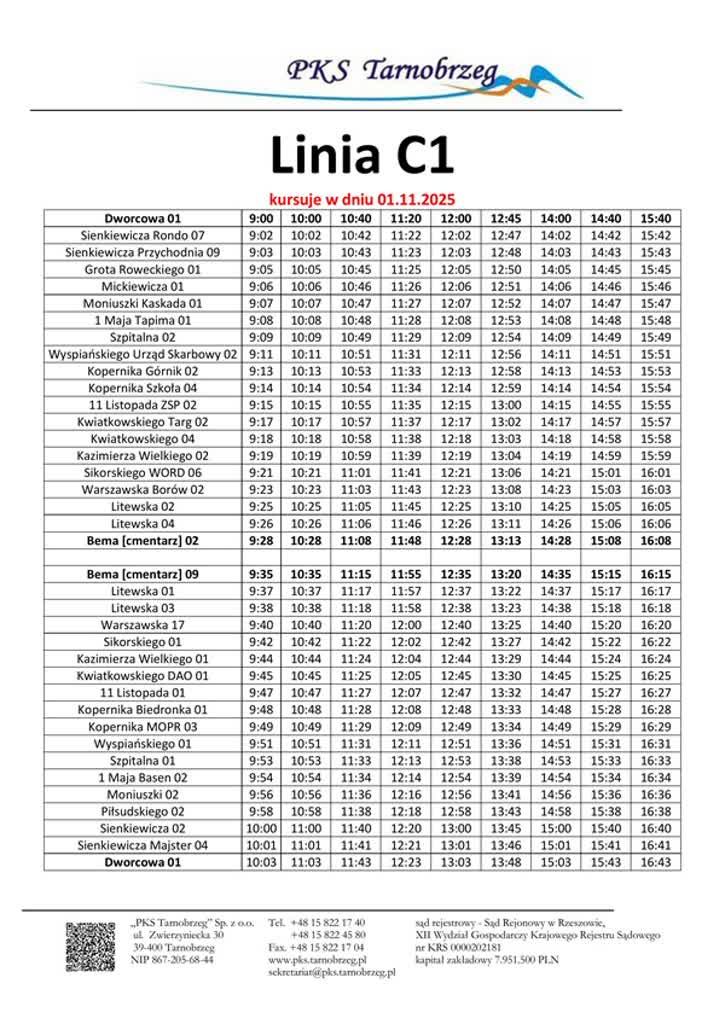 Linia C1 dowiezie pasażerów bezpośrednio na cmentarz w Sobowie.