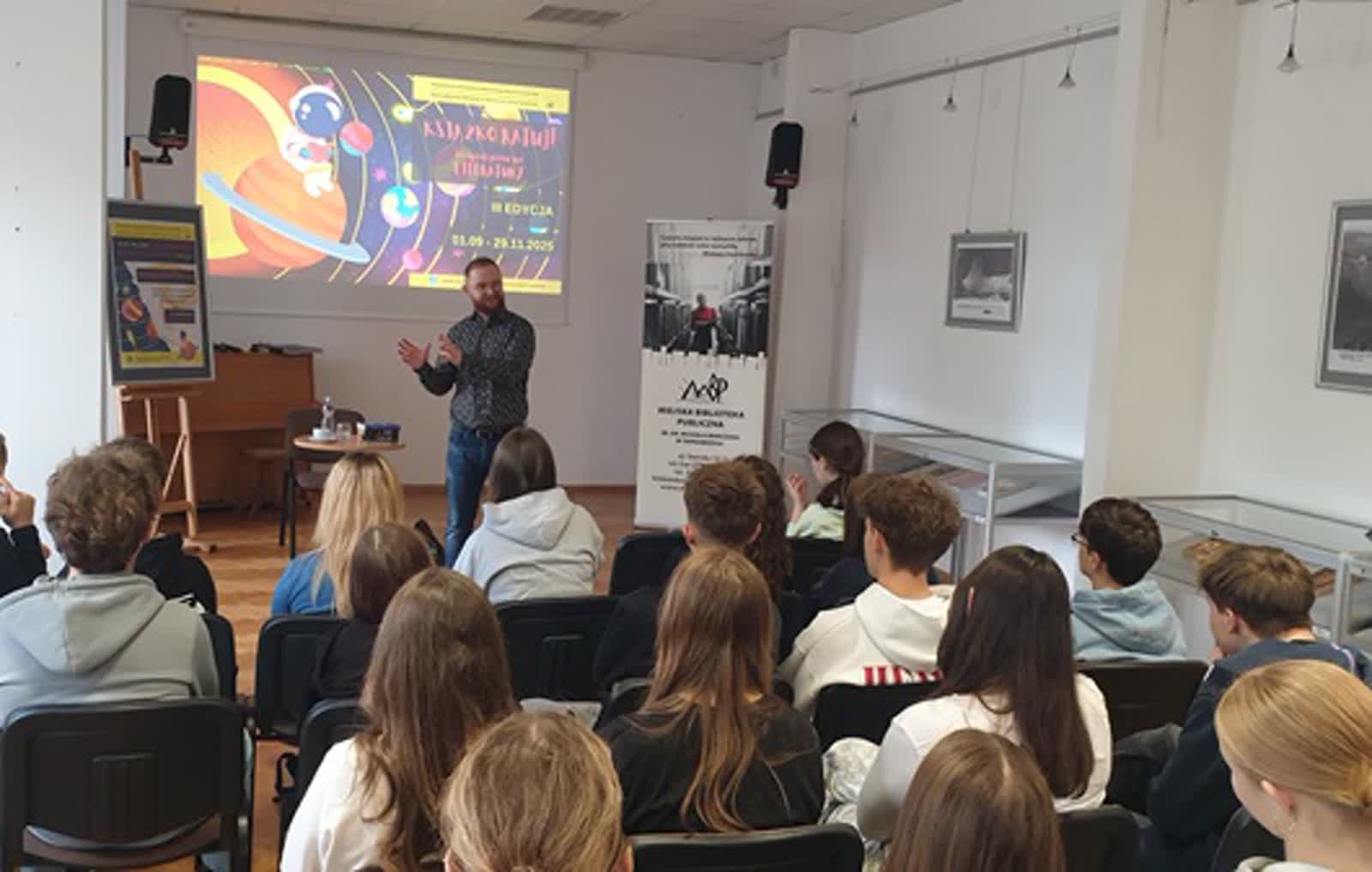 Jedno z wydarzeń w ramach projektu odbyło się dziś bibliotece głównej. Gościem był Krzysztof Piersa, terapeuta do spraw uzależnień, autor książek i poradników profilaktycznych. Podczas warsztatów mówił młodzieży o zagrożeniach wynikających z nadmiernego korzystania z nowych technologii.