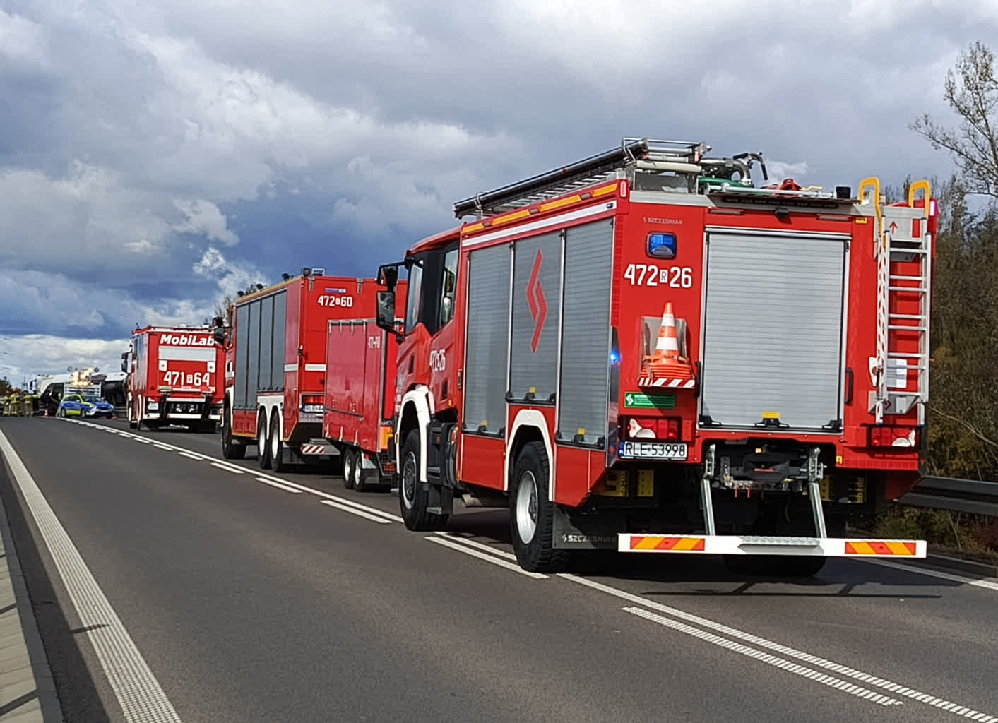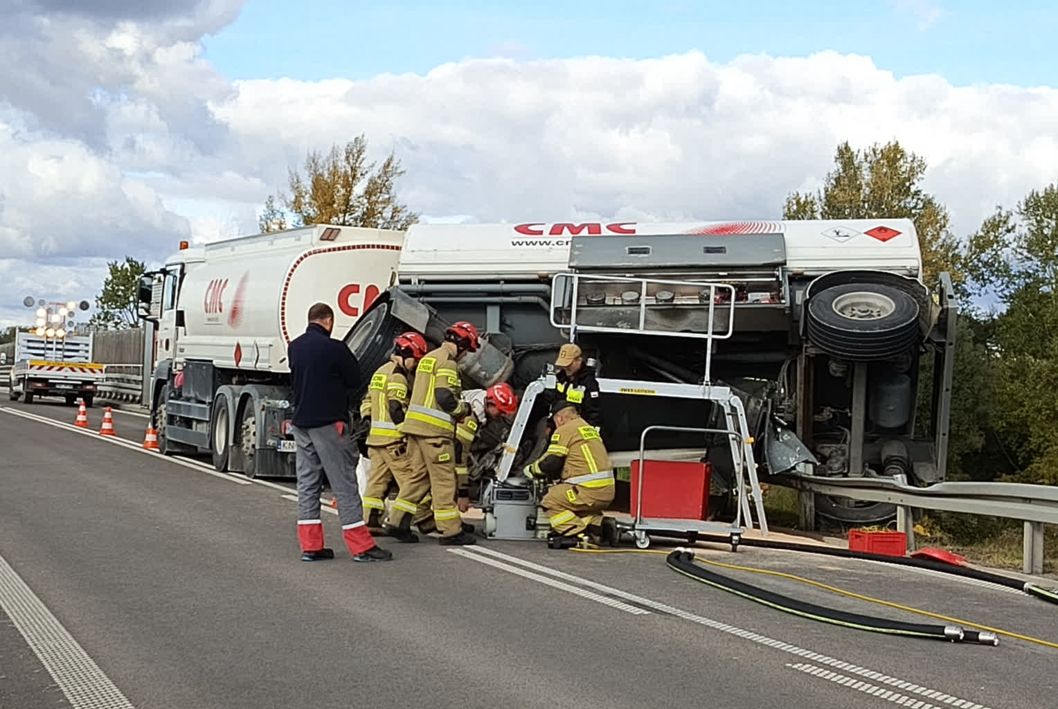 Podczas hamowania jedna z cystern przewróciła się i doszło do wycieku paliwa. W zdarzeniu nikt nie został ranny. Utrudnienia potrwają około 2 godzin w związku z koniecznośćią przepompowania paliwa. Mówi oficer prasowy Komendy Powiatowej Policji w Stalowej Woli starszy aspirant Małgorzata Kania