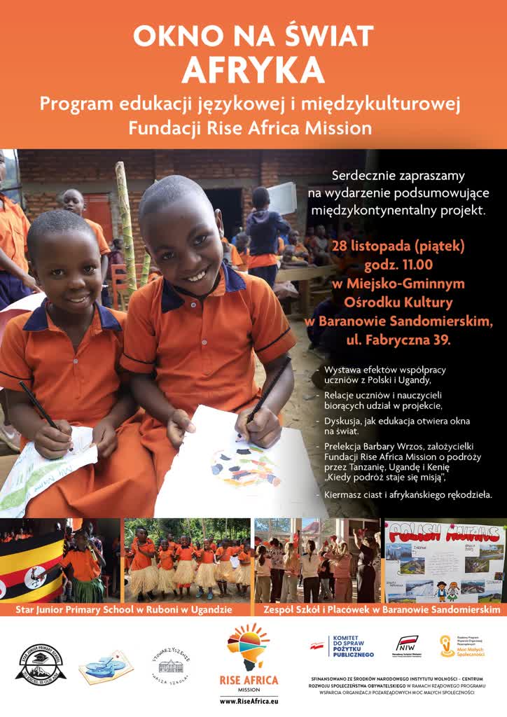 Jak wygląda codzienne życie dzieci w Afryce? Czego możemy się nauczyć od uczniów z afrykańskiej szkoły? I czy uczniowie z niewielkiej miejscowości na Podkarpaciu mogą zaprzyjaźnić się z rówieśnikami z Ugandy? Na te i inne pytania odpowiada projekt „Okno na świat – Afryka”, który Zespół Szkół i Placówek w Baranowie Sandomierskim realizował z Fundacją Rise Africa Mission.