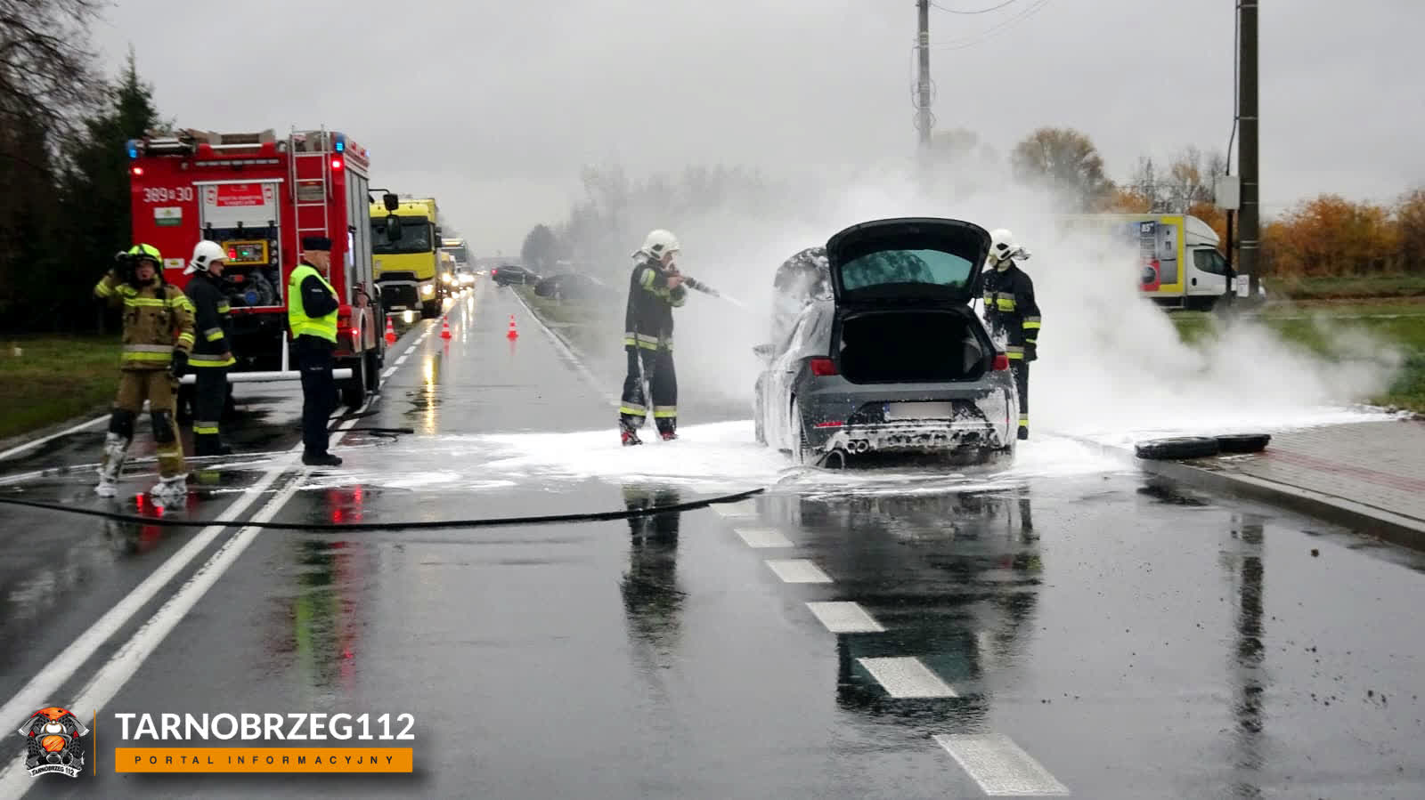 Na miejsce skierowano jednostkę Ochotniczej Straży Pożarnej z Gorzyc oraz patrol policji. Strażacy po przybyciu zabezpieczyli teren i przystąpili do gaszenia pożaru z wykorzystaniem piany gaśniczej. Na czas działań ruch na drodze krajowej nr 77 był całkowicie zablokowany w obu kierunkach. Nie było osób poszkodowanych.