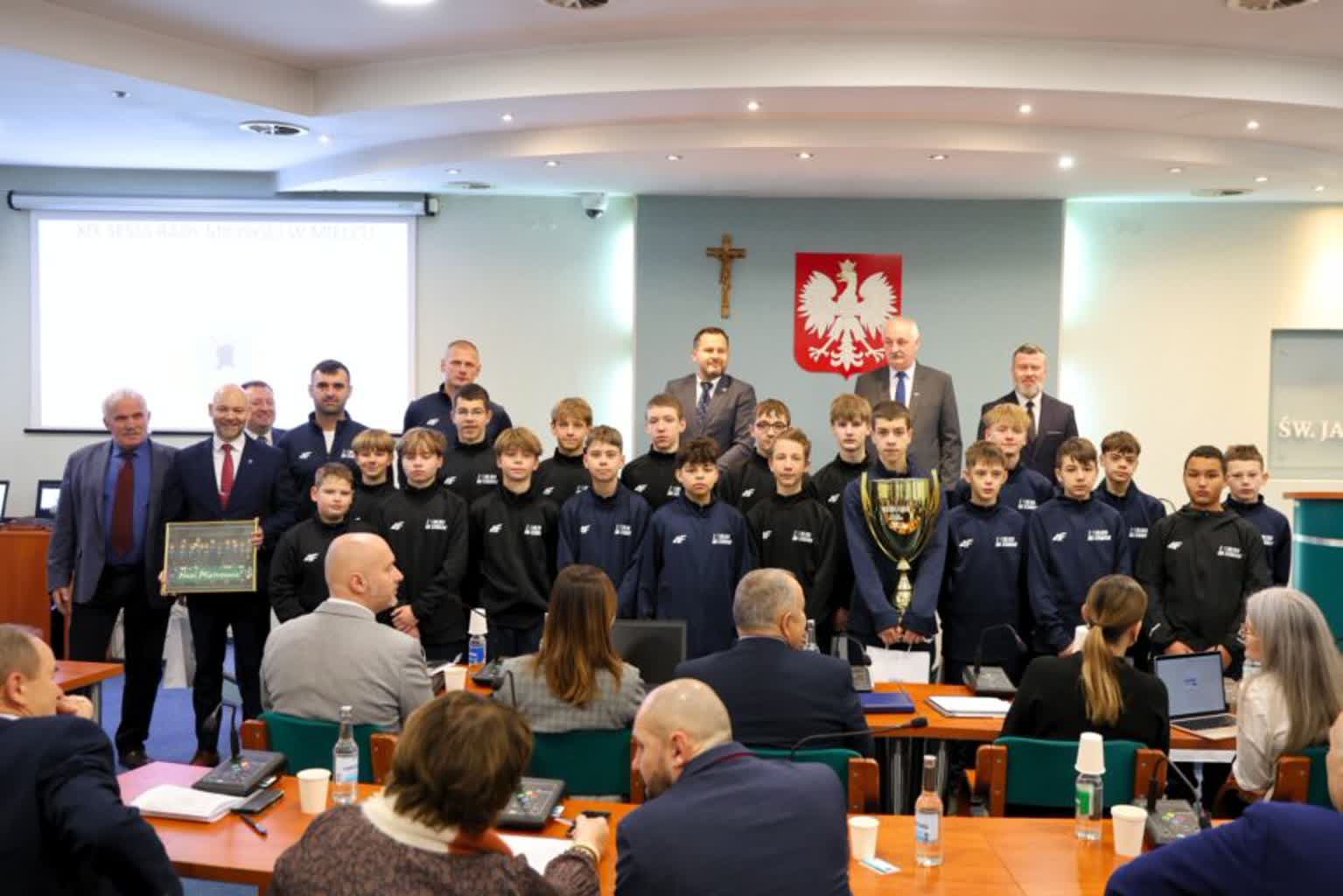 Dziś uczniowie, trenerzy i dyrektor szkoły zostali zaproszeni na sesję Rady Miejskiej w Mielcu. Głos zabrali kapitan drużyny, który opowiedział o drodze zespołu do końcowego triumfu oraz dyrektor Adam Jastrząb, który wymienił również inne sukcesy uczniów.