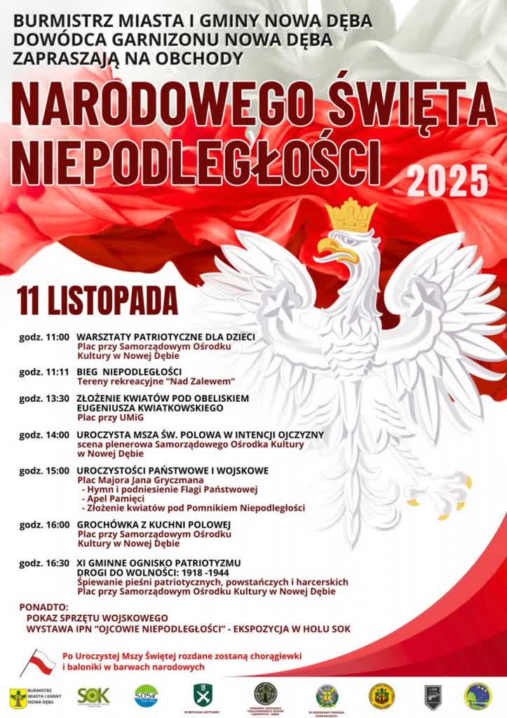 Obchody Narodowego Święta Niepodległości w Nowej Dębie jak co roku będą mieć także sportowy akcent. Na terenach rekreacyjnych nad zalewem odbędzie się Bieg Niepodległości.