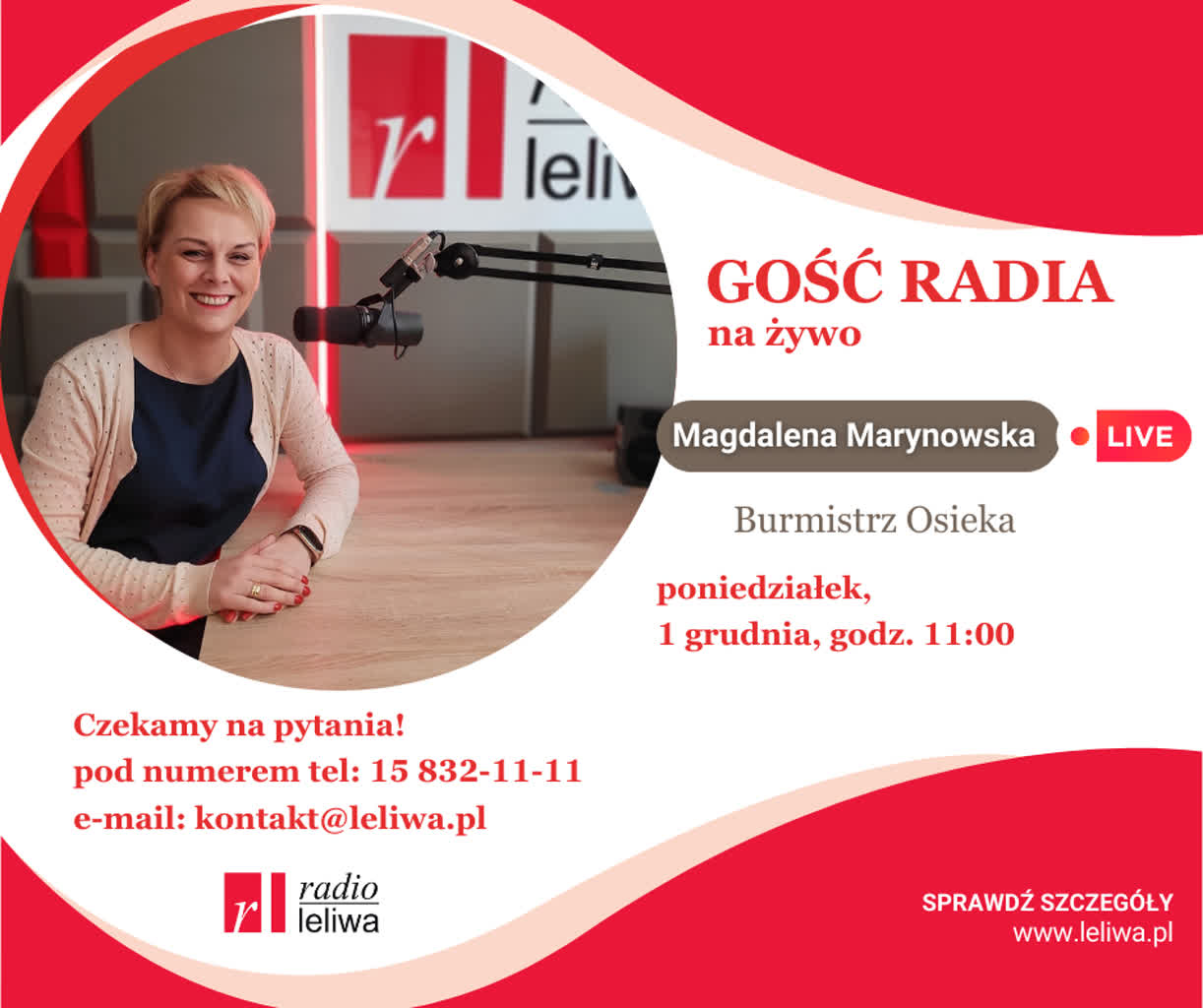 W najbliższy poniedziałek na antenie Radia Leliwa odbędzie się rozmowa na żywo z burmistrz Osieka Magdaleną Marynowską. Od godziny 11:00 do 12:00 słuchacze będą mogli zadawać pytania w rozmowie na żywo (telefon 15 832 11 11). Pytania można także przesyłać już teraz na adres sandomierz@leliwa.pl