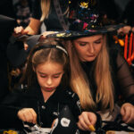 Najmłodsi chętnie angażowali się w animacje i konkursy, a prowadzący bez trudu porwali do wspólnej zabawy nawet najbardziej „sztywne” szkielety. Ogromnym zainteresowaniem cieszyła się także czarna wata cukrowa, której aromat błyskawicznie przyciągał kolejnych ochotników. W programie znalazło się wiele atrakcji dla miłośników kreatywnej zabawy. Podczas warsztatów powstawały czarodziejskie kapelusze, maski z dyni, ozdobne pierniczki, lizaki w kształcie pająków, a także mroczne tatuaże i upiorne fryzury. Jednym z najbardziej wyczekiwanych punktów wydarzenia była „Chata Czarownic”. Uczestnicy musieli zmierzyć się z serią zakręconych zadań i magicznych prób przygotowanych przez wiedźmy. Choć nie brakowało dreszczy, każdy ze śmiałków dzielnie pokonał czarownicze wyzwania. Na odwiedzających czekało również stoisko z „magicznymi eliksirami”. Finałem wieczoru był Bal z Czarownicami.