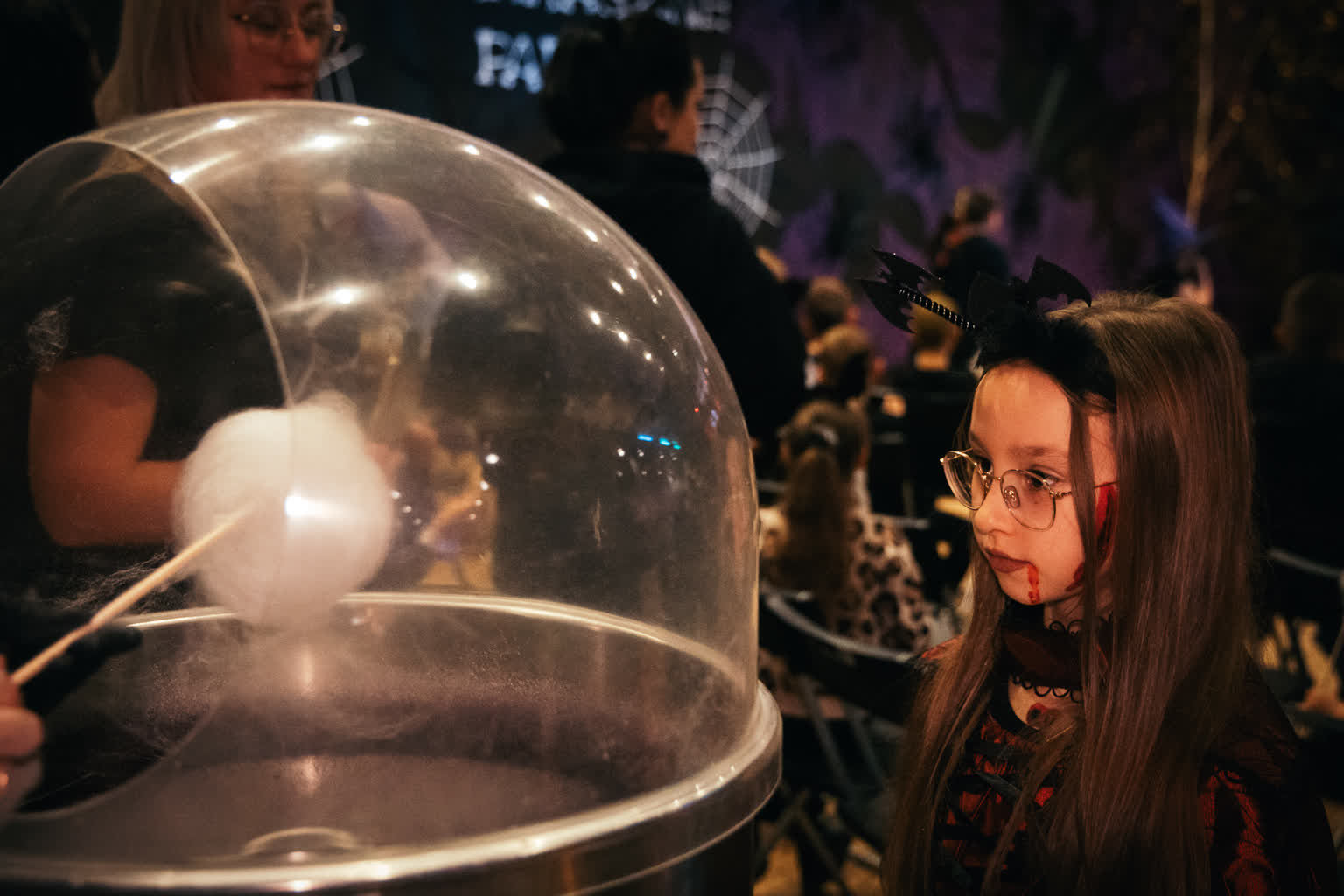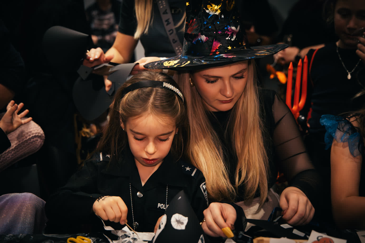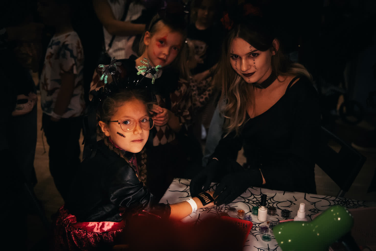 Najmłodsi chętnie angażowali się w animacje i konkursy, a prowadzący bez trudu porwali do wspólnej zabawy nawet najbardziej „sztywne” szkielety. Ogromnym zainteresowaniem cieszyła się także czarna wata cukrowa, której aromat błyskawicznie przyciągał kolejnych ochotników. W programie znalazło się wiele atrakcji dla miłośników kreatywnej zabawy. Podczas warsztatów powstawały czarodziejskie kapelusze, maski z dyni, ozdobne pierniczki, lizaki w kształcie pająków, a także mroczne tatuaże i upiorne fryzury. Jednym z najbardziej wyczekiwanych punktów wydarzenia była „Chata Czarownic”. Uczestnicy musieli zmierzyć się z serią zakręconych zadań i magicznych prób przygotowanych przez wiedźmy. Choć nie brakowało dreszczy, każdy ze śmiałków dzielnie pokonał czarownicze wyzwania. Na odwiedzających czekało również stoisko z „magicznymi eliksirami”. Finałem wieczoru był Bal z Czarownicami.