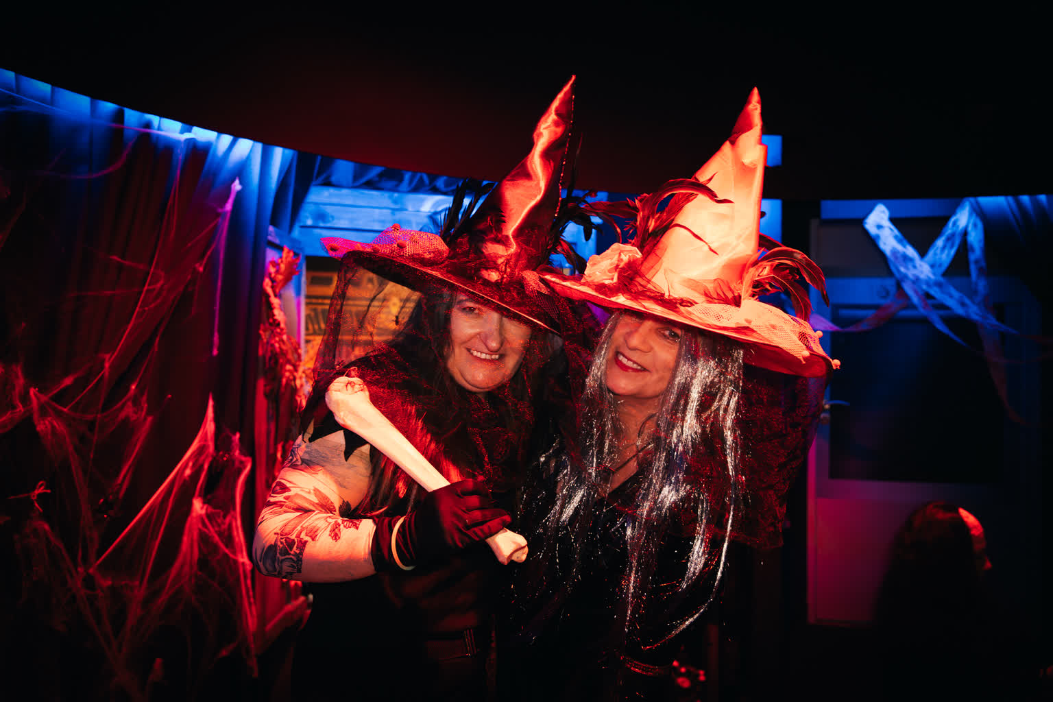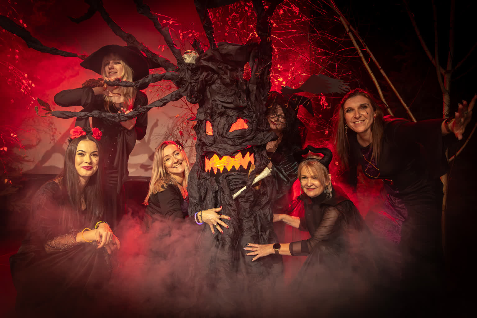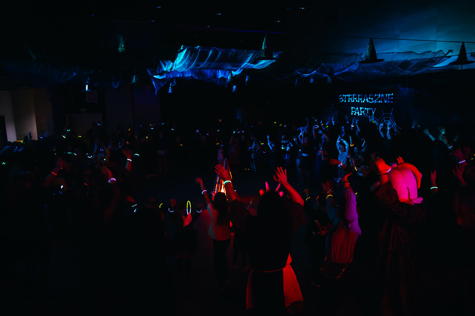Najmłodsi chętnie angażowali się w animacje i konkursy, a prowadzący bez trudu porwali do wspólnej zabawy nawet najbardziej „sztywne” szkielety. Ogromnym zainteresowaniem cieszyła się także czarna wata cukrowa, której aromat błyskawicznie przyciągał kolejnych ochotników. W programie znalazło się wiele atrakcji dla miłośników kreatywnej zabawy. Podczas warsztatów powstawały czarodziejskie kapelusze, maski z dyni, ozdobne pierniczki, lizaki w kształcie pająków, a także mroczne tatuaże i upiorne fryzury. Jednym z najbardziej wyczekiwanych punktów wydarzenia była „Chata Czarownic”. Uczestnicy musieli zmierzyć się z serią zakręconych zadań i magicznych prób przygotowanych przez wiedźmy. Choć nie brakowało dreszczy, każdy ze śmiałków dzielnie pokonał czarownicze wyzwania. Na odwiedzających czekało również stoisko z „magicznymi eliksirami”. Finałem wieczoru był Bal z Czarownicami.