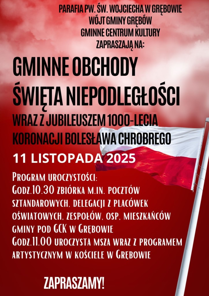 Od mszy w intencji ojczyzny rozpoczną się w Grębowie obchody Narodowego Święta Niepodległości. Nabożeństwo o godzinie 11 zostanie odprawione w kościele parafialnym. Po jego zakończeniu odbędzie się program artystyczny przygotowany przez Gminne Centrum Kultury.
