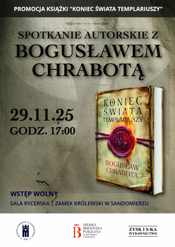 Spotkanie odbędzie się w sobotę 29 listopada o godz. 17.00 w Zamku Królewskim w Sandomierzu. Współorganizatorami wydarzenia są Muzeum Zamkowe w Sandomierzu, Miejska Biblioteka Publiczna im. Jana Długosza w Sandomierzu oraz Wydawnictwo Zysk i S-ka. Wstęp wolny.