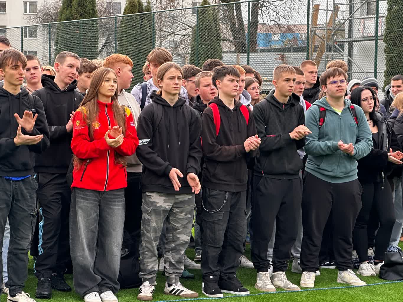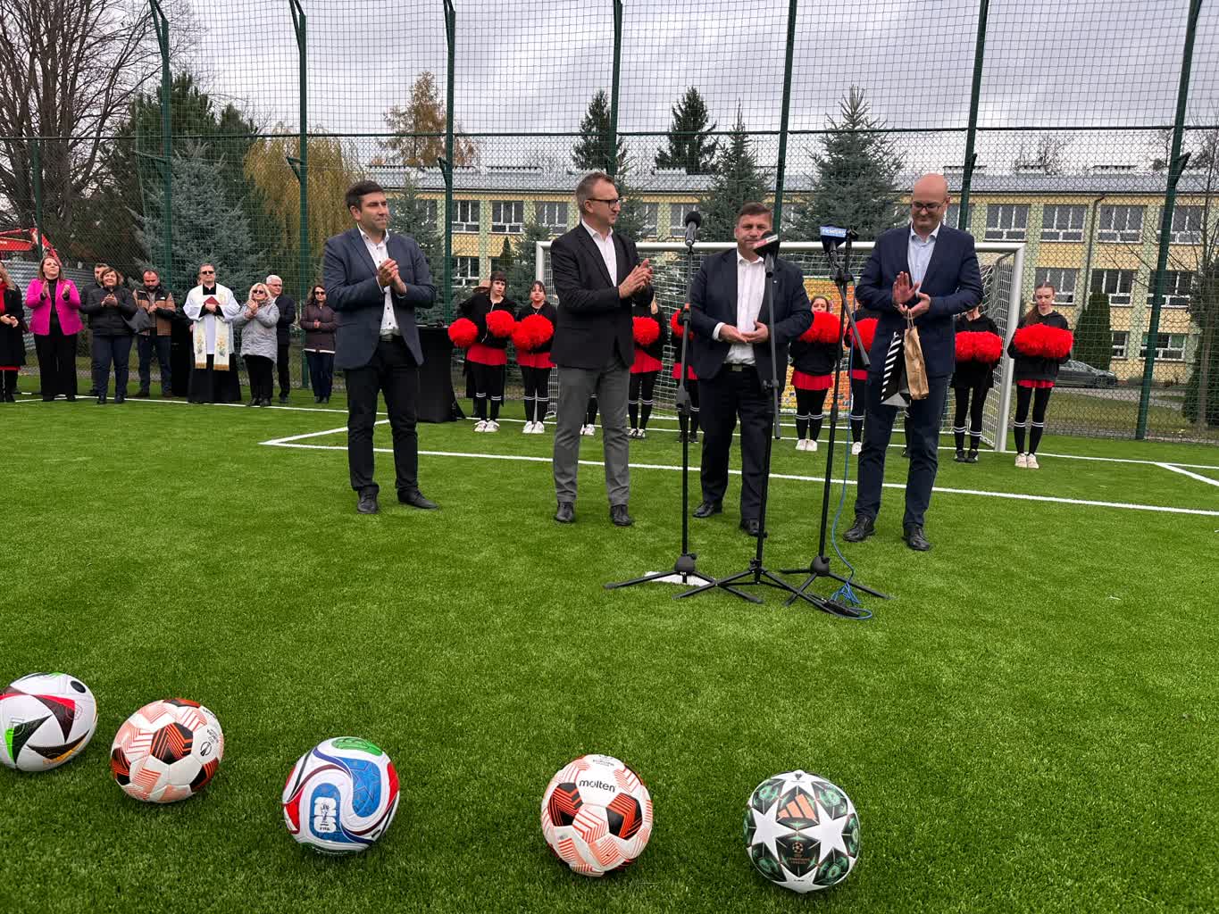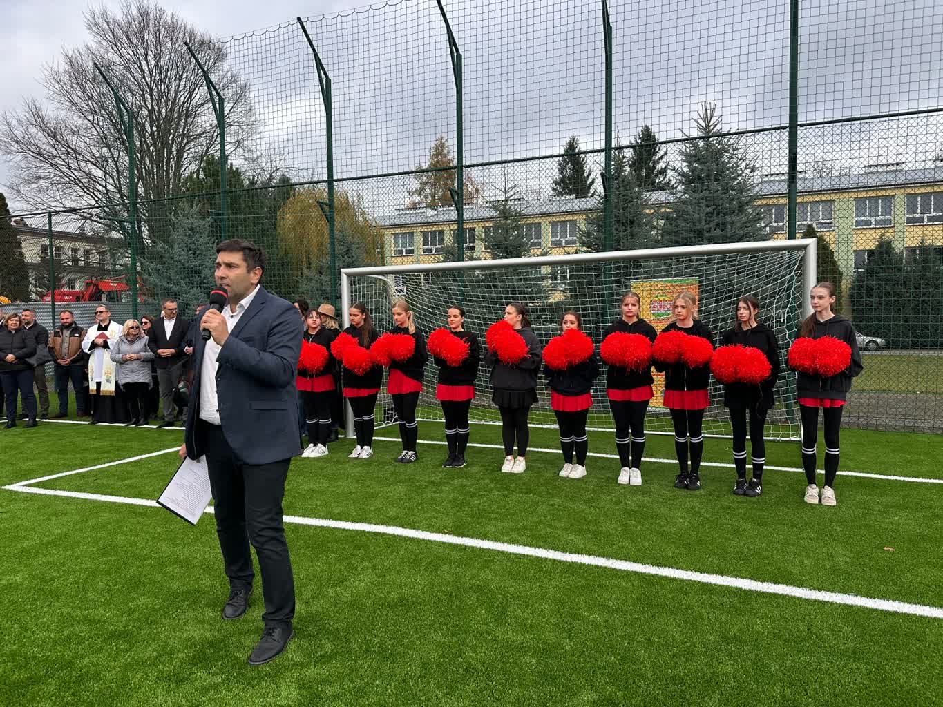 Uroczystemu otwarciu boiska towarzyszyły rozgrywki sportowe i występy cheerleaderek.