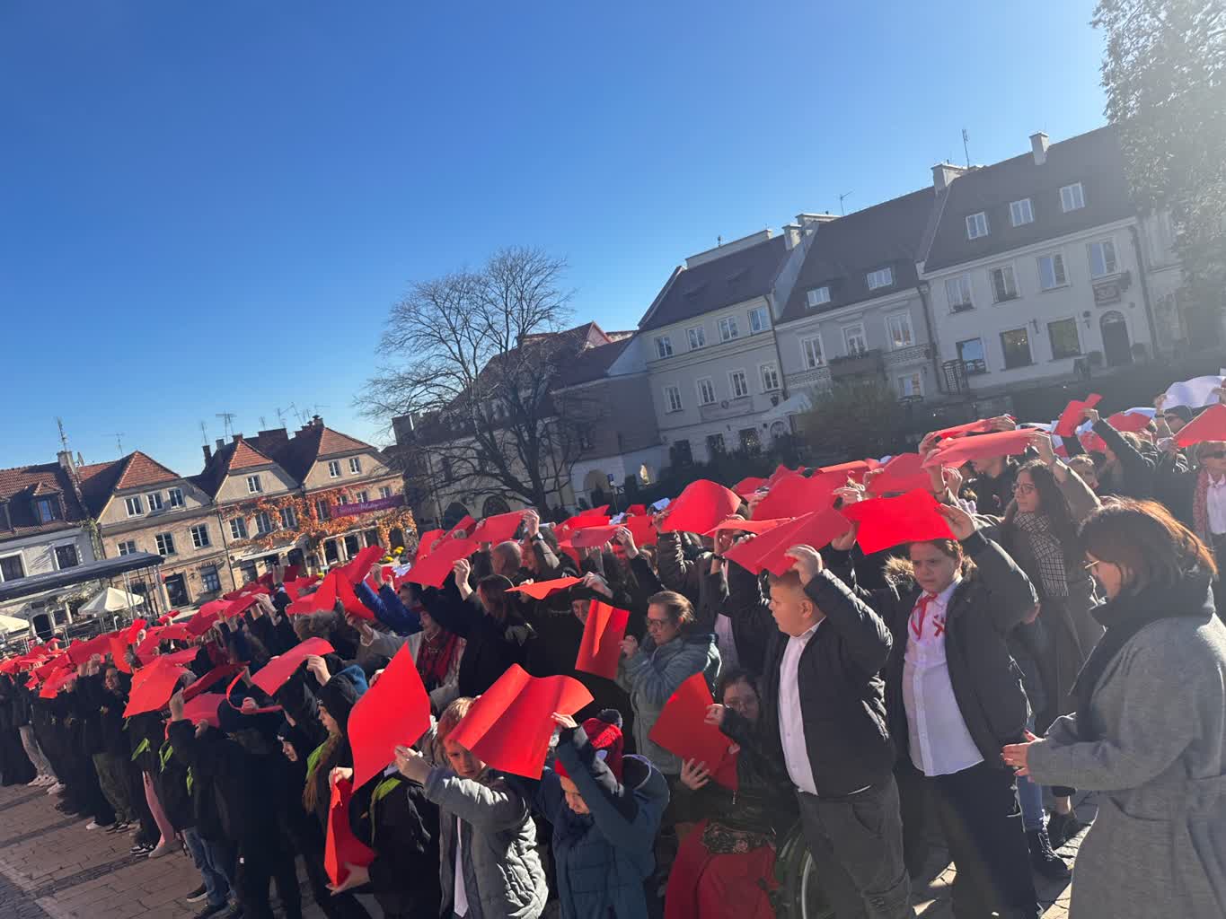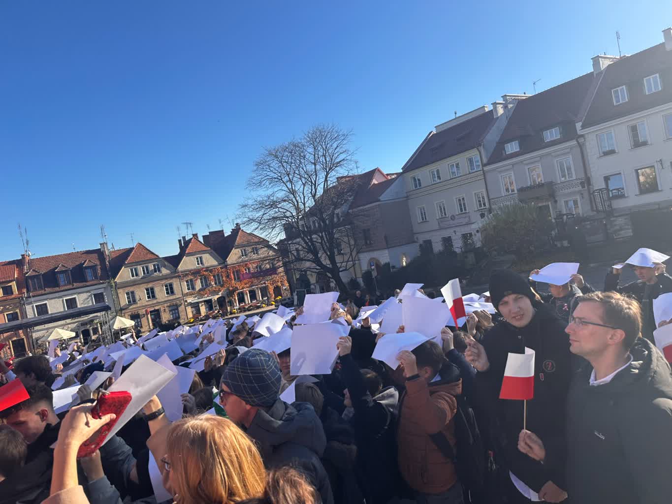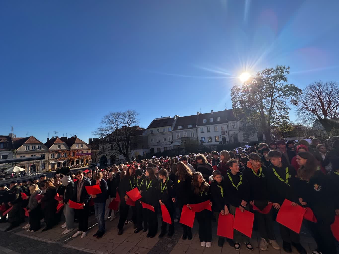 Na sandomierskim rynku powstała żywa flaga – to jeden z elementów obchodów Narodowego Święta Niepodległości organizowanych przez Sandomierskie Centrum Kultury oraz Urząd Miejski. Stworzyli ją w głównej mierze uczniowie sandomierskich szkół.