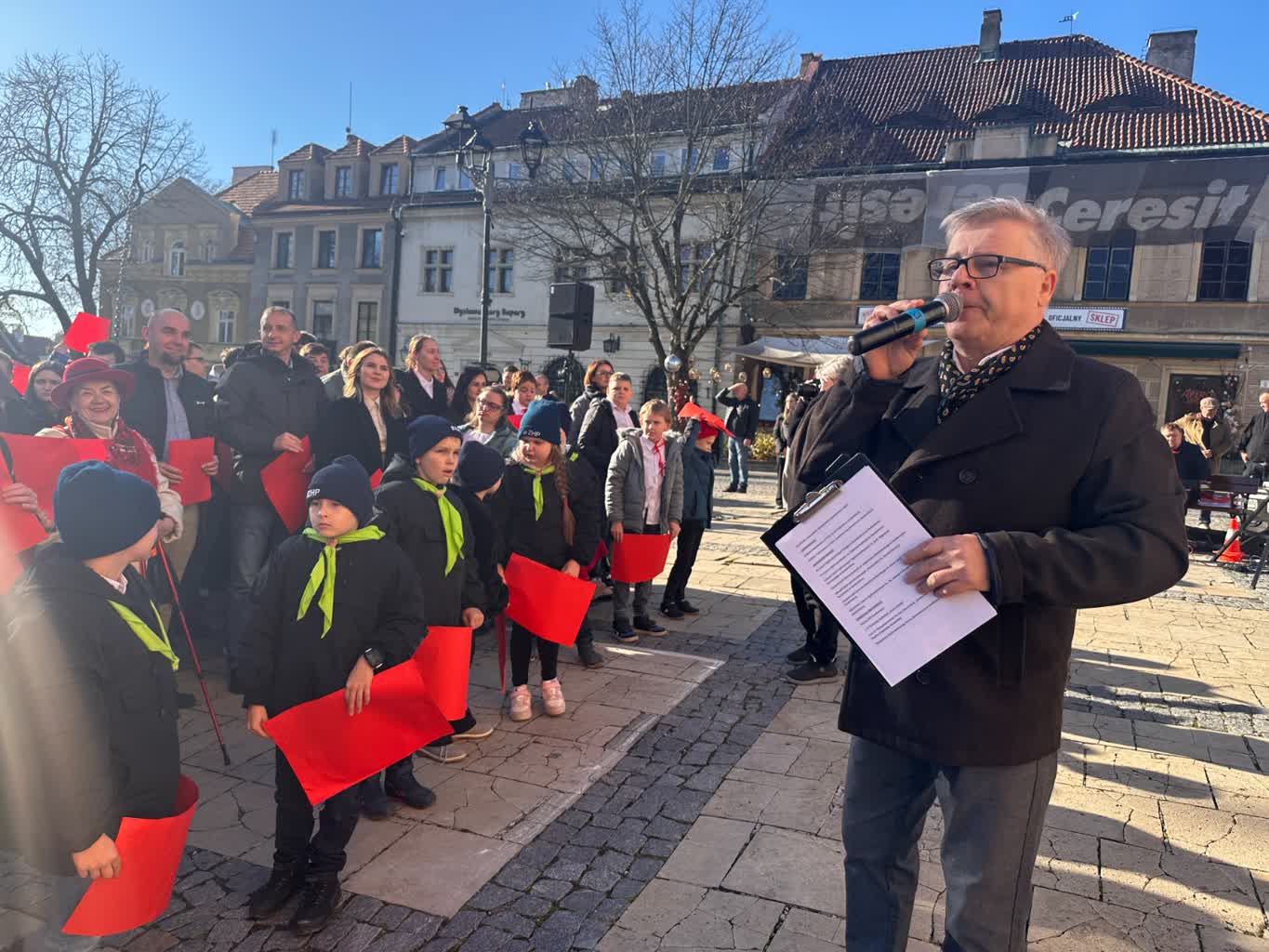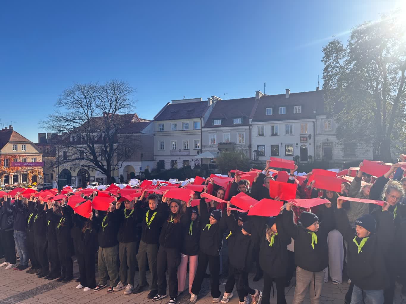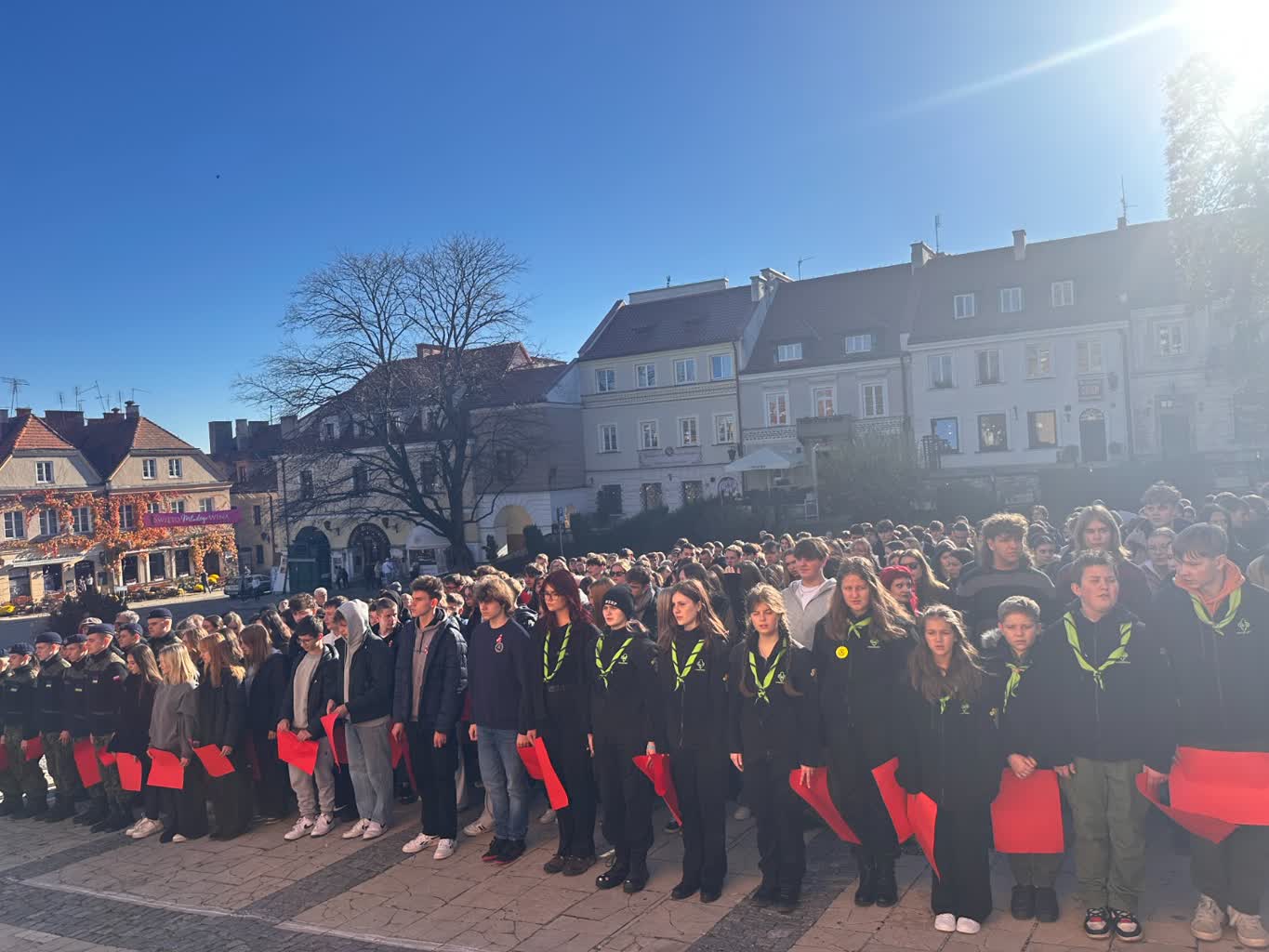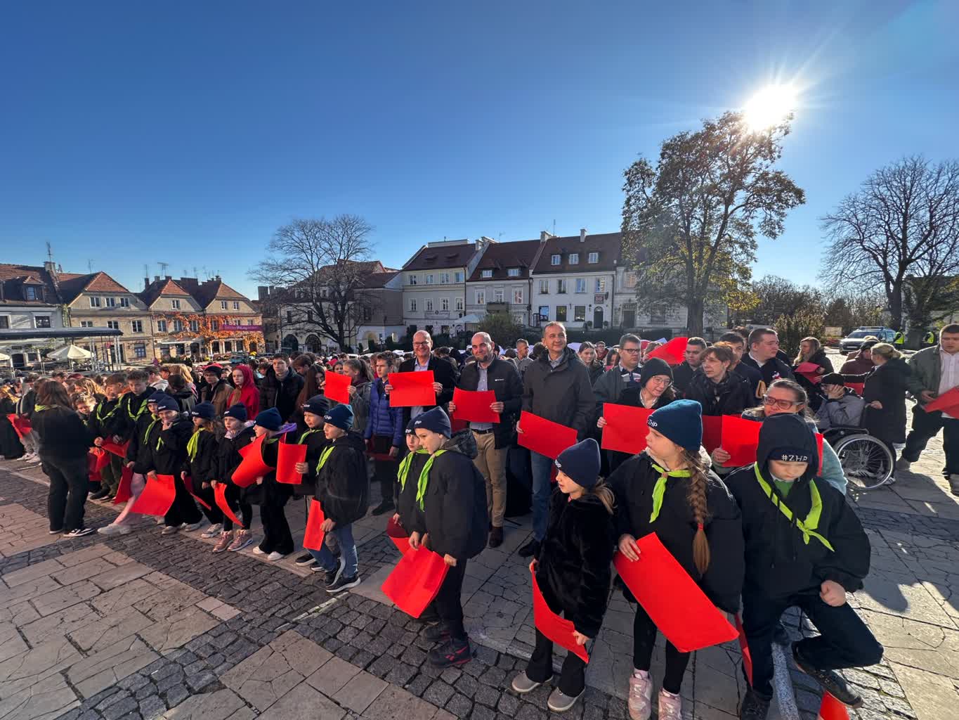Na sandomierskim rynku powstała żywa flaga – to jeden z elementów obchodów Narodowego Święta Niepodległości organizowanych przez Sandomierskie Centrum Kultury oraz Urząd Miejski. Stworzyli ją w głównej mierze uczniowie sandomierskich szkół.