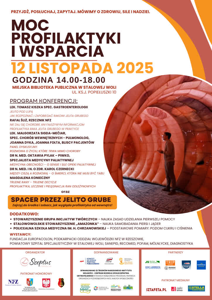O „Mocy Profilaktyki i Wsparciu” mowa będzie na konferencji poświęconej zdrowiu oraz profilaktyce w walce z rakiem i wsparciu w chorobie. Konferencja odbędzie się juz w tę środę 12 listopada w Stalowej Woli. Organizatorem jest Fundacja Szeptus.
