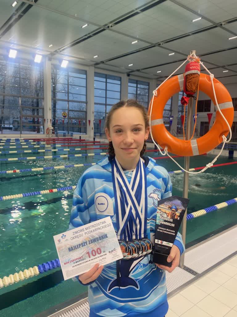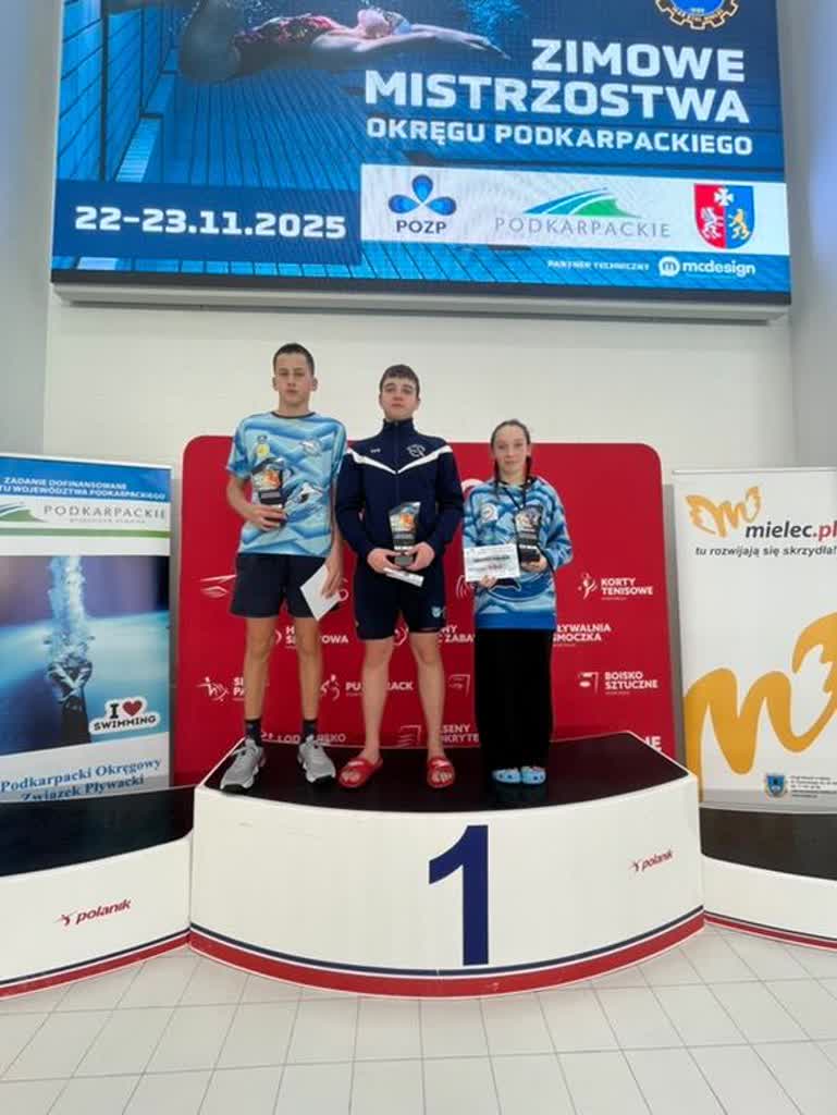 Rewelacyjnie zakończyli Zimowe Mistrzostwa Okręgu Podkarpackiego, które odbyły się na mieleckiej pływalni w dniach 22-23.11.2025 r. zawodnicy UKS Delfin. Podopieczni trenerów Angeliki Michalik i Krzysztofa Dydo zdobyli aż 32 medale ( 18 złotych, 11 srebrnych, 3 brązowe) zajmując tym samym 3 miejsce w klasyfikacji medalowej.