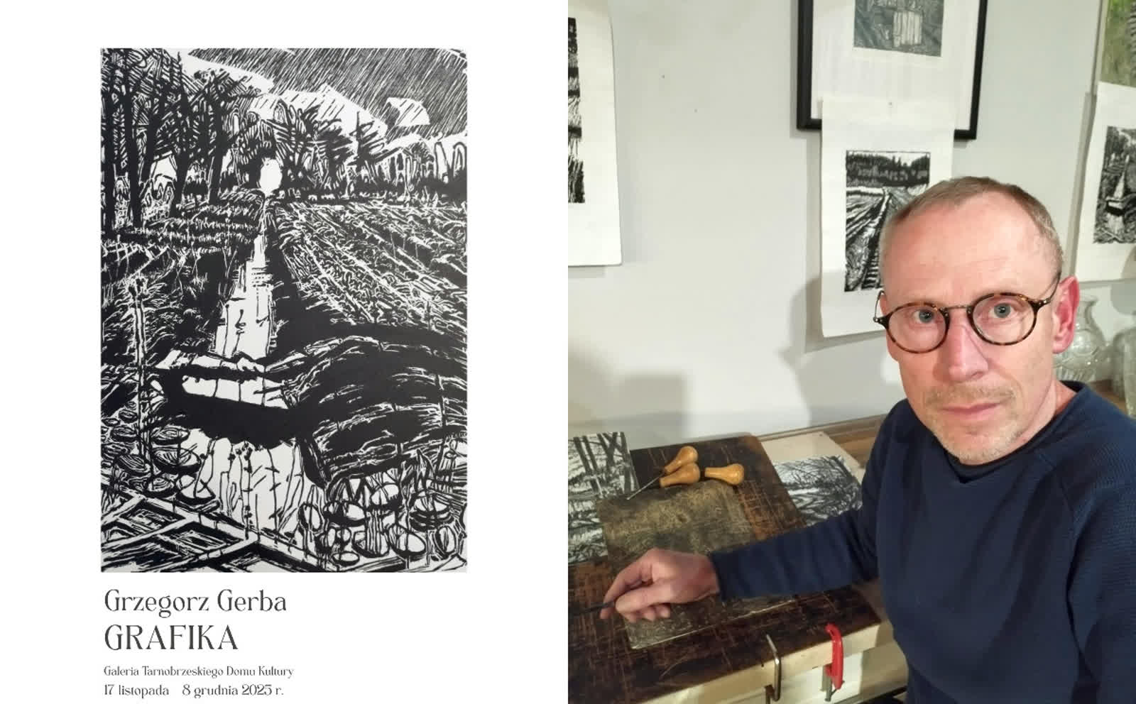 Czarno-biały świat Grzegorza Gerby ponownie w Tarnobrzeskim Domu Kultury. W czwartek (20 listopada) odbędzie się wernisaż najnowszej wystawy grafik artysty. Podczas wydarzenia będzie można spotkać się z twórcą.
