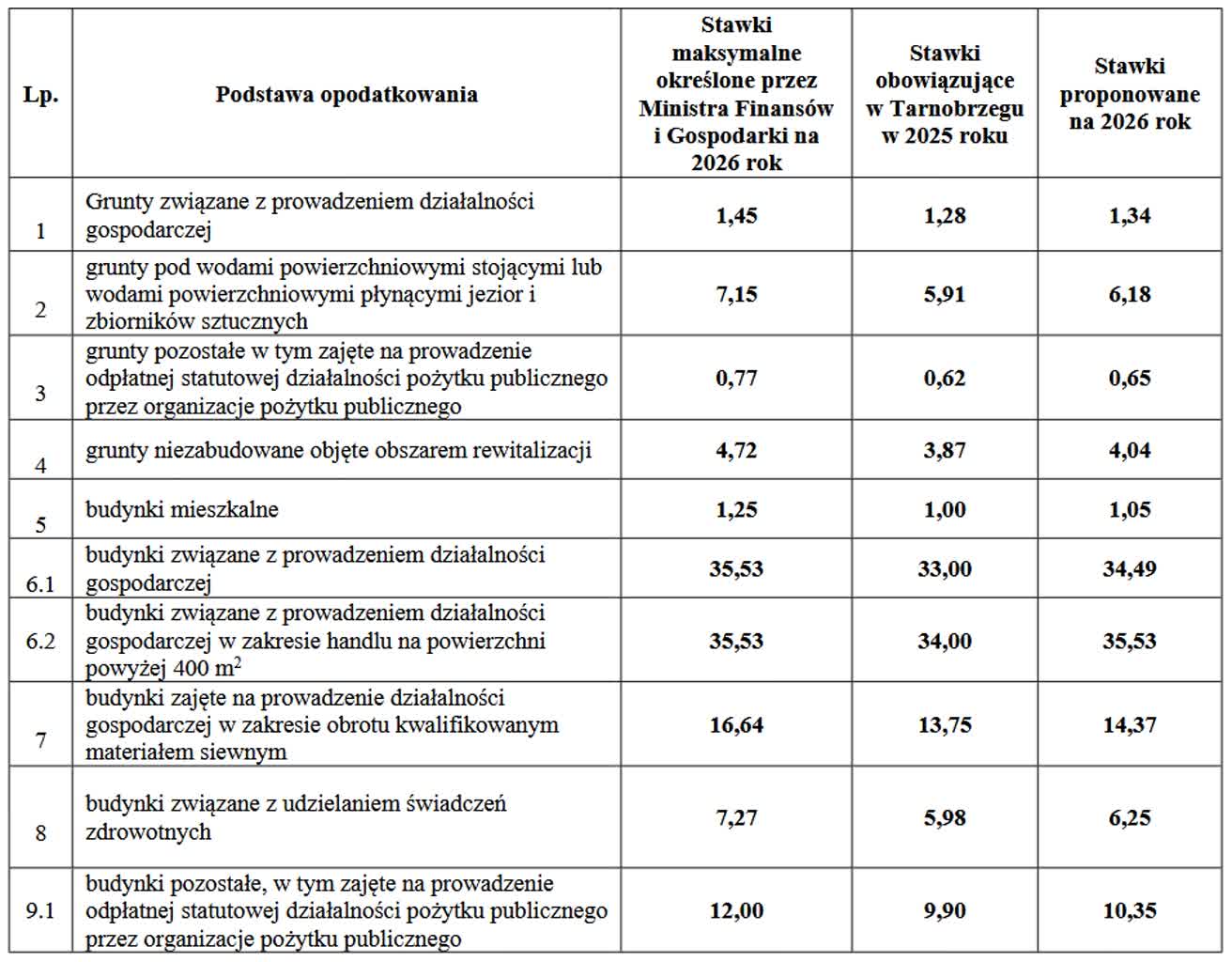 W uzasadnieniu do projektu uchwały zawarto, że stawki podatku od nieruchomości ustalono, uwzględniając wzrost cen w gospodarce oraz znaczenie tego podatku jako głównego źródła dochodów miasta Tarnobrzega, niezbędnych do realizacji jego podstawowych zadań. W porównaniu do obecnie obowiązujących w 2026 roku podatki od nieruchomości wzrosną o 4,5 %.