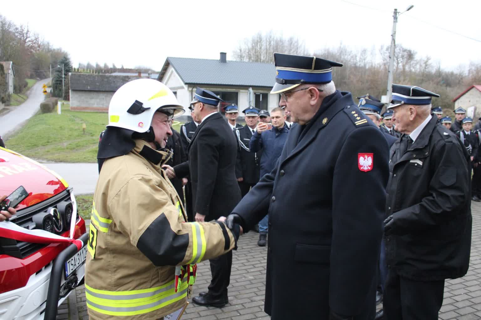 Poświęcenia samochodu podczas uroczystego apelu dokonali: kapelan krajowy strażaków ks. Jan Krynicki, kapelan gminny strażaków ks. Artur Barański oraz proboszcz parafii Góry Wysokie ks. Roman Kowalski.