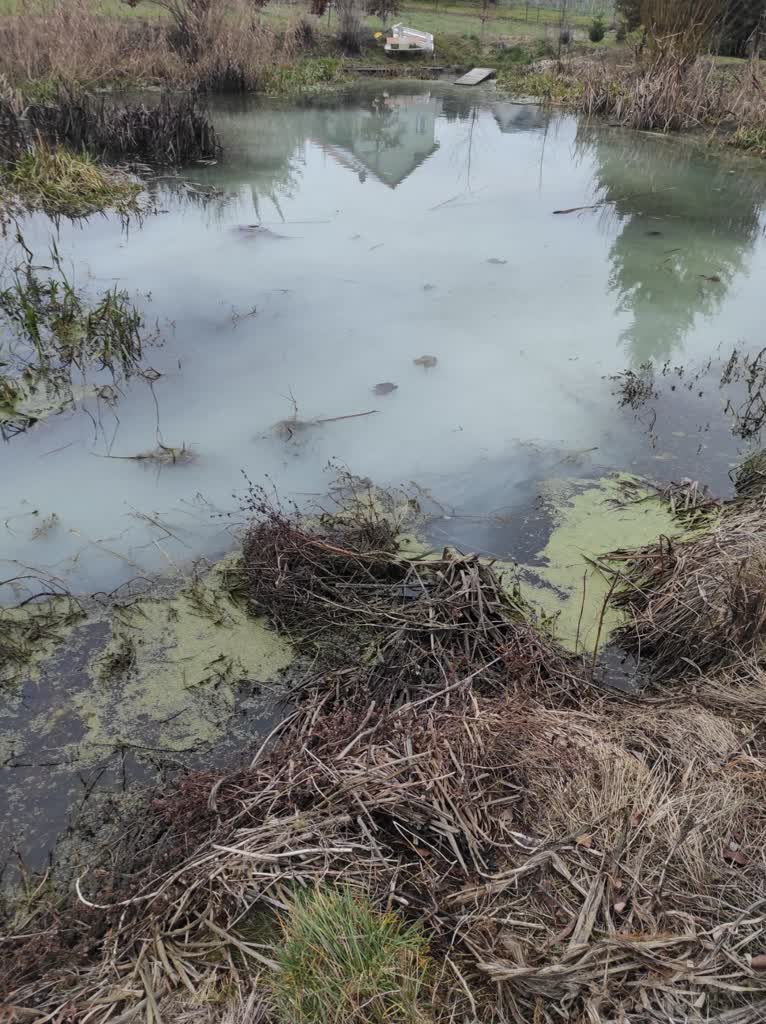 Po przyjeździe zastępu strażakow na miejsce zdarzenia i przeprowadzonym rozpoznaniu potwierdzono, że we wskazanym przez zgłaszającego miejscu, w stawie sąsiadującym z rzeką (woda rzeczna przepływa przez staw) występuje zanieczyszczenie. Woda charakteryzowała się białym mętnym kolorem w całej swojej objętości. Brak zapachu i olejowego filmu na powierzchni, nie stwierdzono śniętych ryb. Na miejsce zdarzenia została zadysponowana grupa specjalistyczna ratownictwa chemiczno-ekologicznego Ostrowiec2, która po przyjeździe potwierdziła zasadowy odczyn wody. Na miejsce zdarzenia przyjechał przedstawiciel Wód Polskich. Źródło zanieczyszczenia było niemożliwe do ustalenia z uwagi na silny prąd wody w rzece, który skutecznie usunął widoczne wcześniej zanieczyszczenie. Jedyne widoczne zanieczyszczenie utrzymywało się w prywatnym stawie. Informacje o zaistniałym zdarzeniu zostały przekazane do Wojewódzkiego Inspektoratu Ochrony Środowiska w Kielcach.