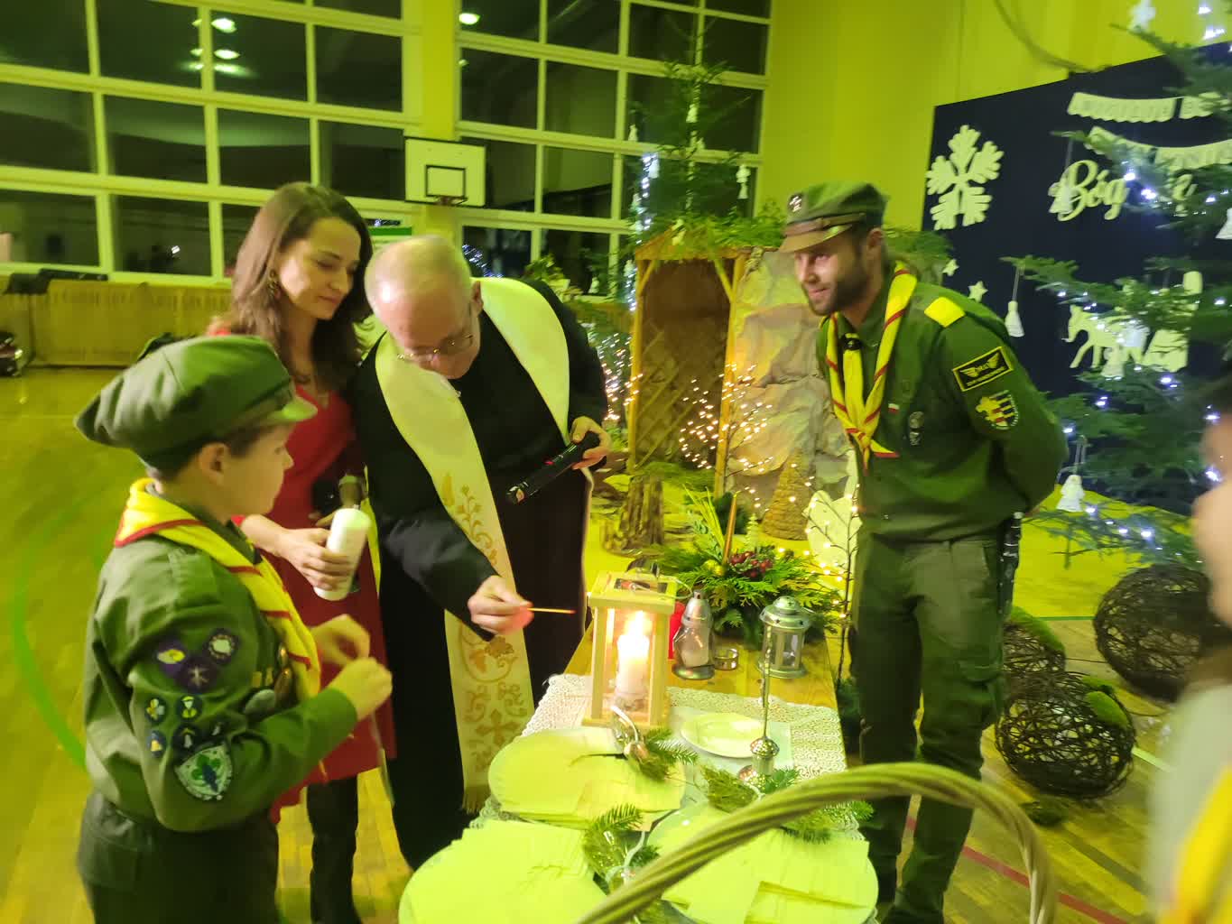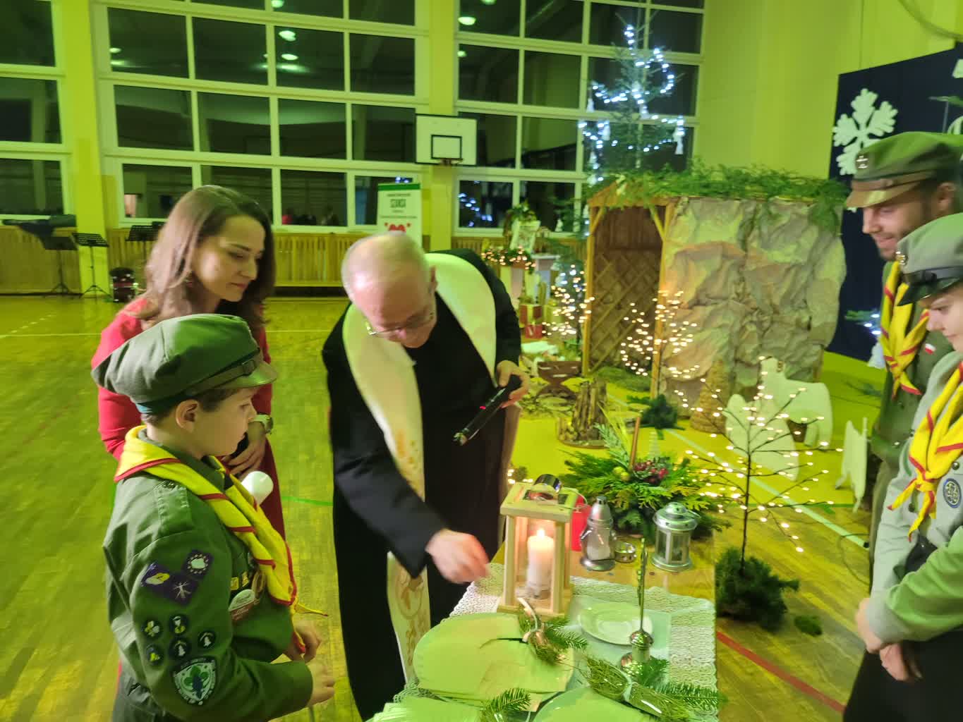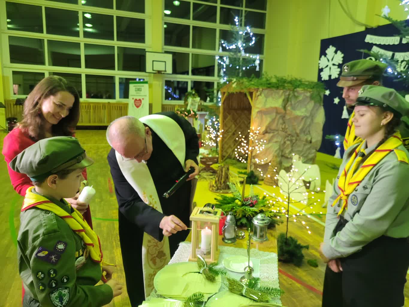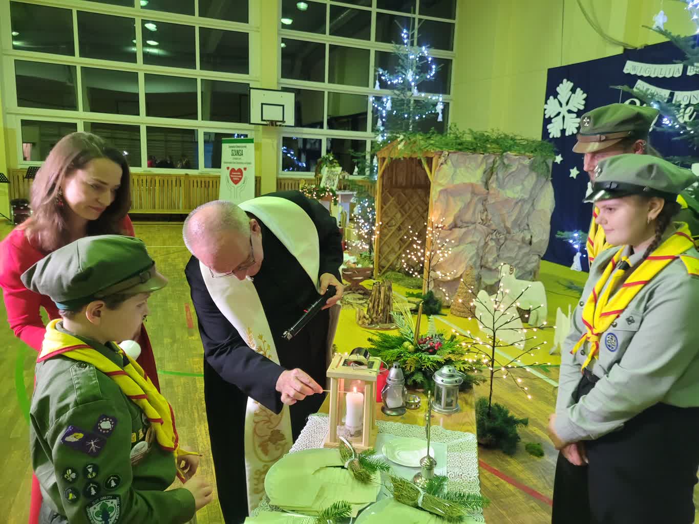 W czasie spotkania była modlitwa, dzielenie się opłatkiem i kolędy. Odbyło się także przekazanie przez harcerzy Betlejemskiego Światła Pokoju.