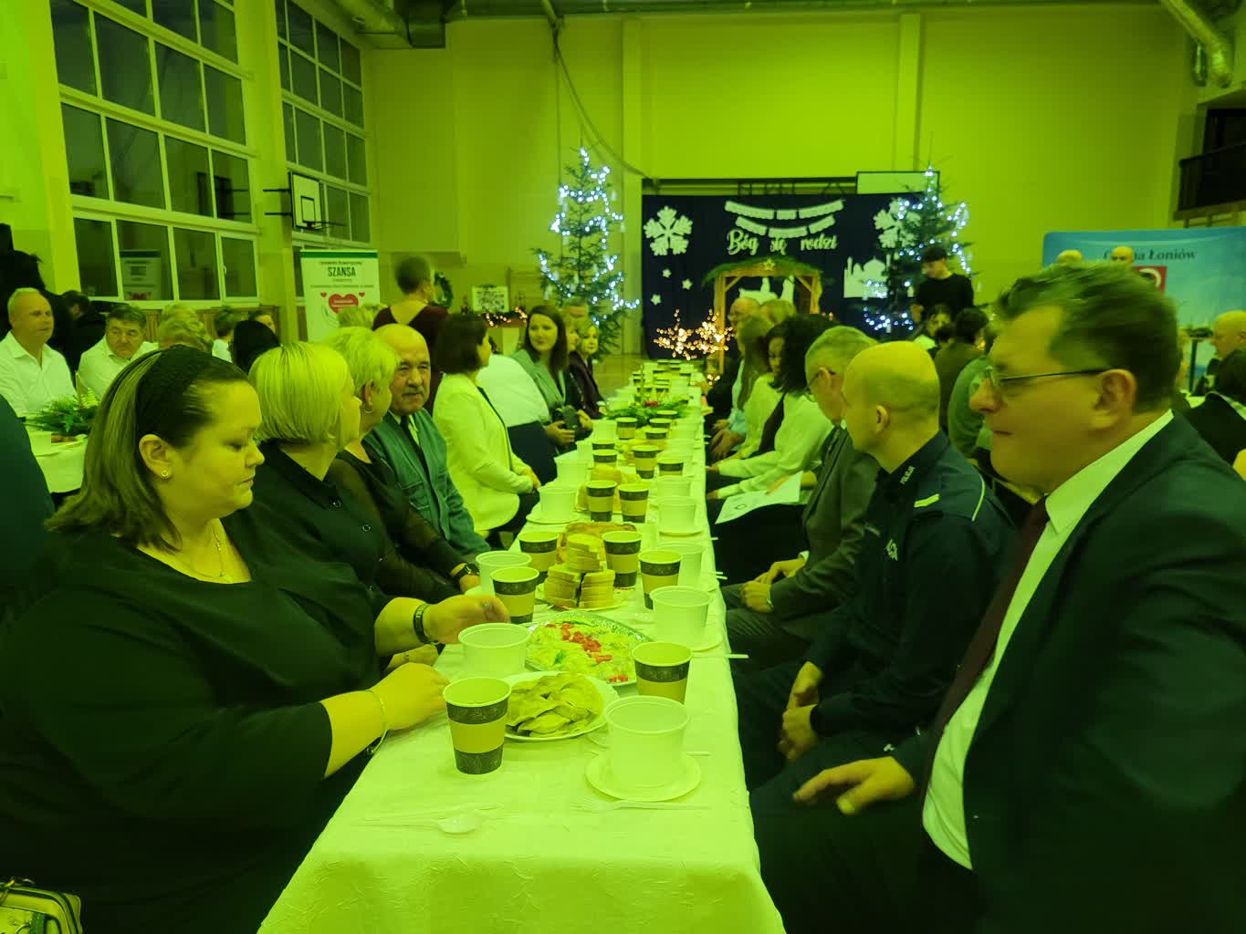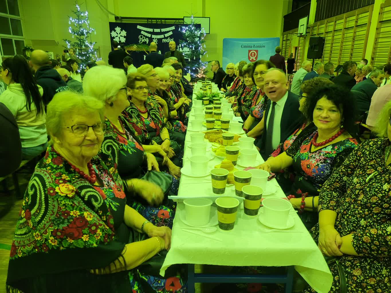 Dwieście osób wzięło udział w zorganizowanym w Łoniowie pierwszym gminnym spotkaniu wigilijnym. Mieszkańcy gminy zasiedli przy nakrytych białym obrusem stołach w udekorowanej świątecznie szkolnej hali sportowej.