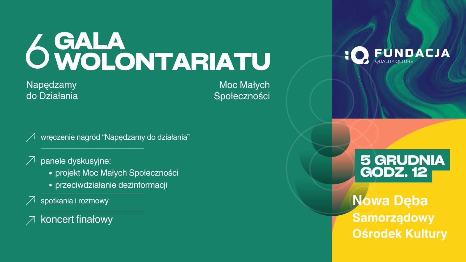 Już po raz szósty nowodębska Fundacja Q organizuje Galę Wolontariatu „Napędzamy do działania”. Wydarzenie odbędzie się w najbliższy piątek, 5 grudnia w Samorządowym Ośrodku Kultury w Nowej Dębie.