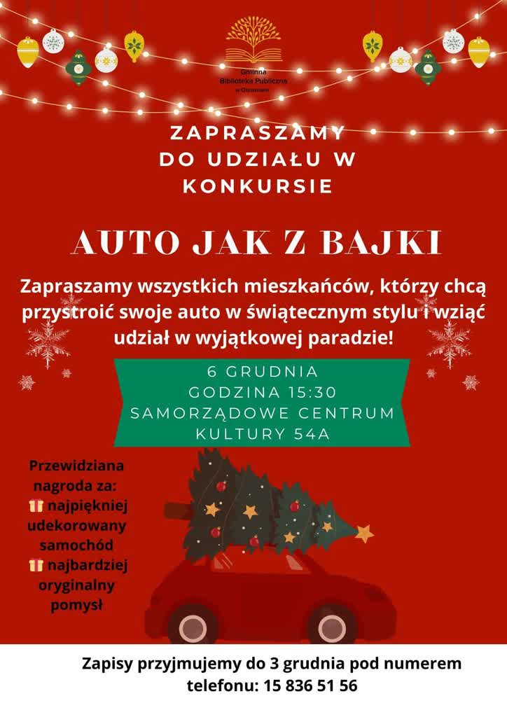 Główna część wydarzenia odbędzie się 6 grudnia – oficjalnego dnia „Mikołajek jak z bajki”. Uroczysty start zaplanowano na godzinę 15:30 przy Samorządowym Centrum Kultury w Obrazowie, a na uczestników wydarzenia czekać będzie bajkowa kraina Świętego Mikołaja z pełnym świątecznych atrakcji programem, w którym znalazły się: Jarmark Bożonarodzeniowych Pyszności, Zimowa Fabryka Zabawy z animatorami, Kącik Artystycznej Magii z warsztatami rękodzielniczymi, gwiazdkowe upominki dla wszystkich dzieci, uroczyste odpalenie Bajkowego Drzewka oraz konkurs, w którym zwycięskie świąteczne auto zdobędzie tytuł „Złoty Rudolf 2025”. Laureat zostanie wyłoniony przez specjalnie powołaną komisję konkursową. Organizatorzy serdecznie zachęcają wszystkich mieszkańców do udziału – to doskonała okazja, by zaprezentować swoją kreatywność i wspólnie stworzyć wyjątkowe widowisko.