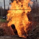 Około południa podczas prac ziemnych doszło do rozszczelniania gazociągu i zapłonu wypływającego gazu.